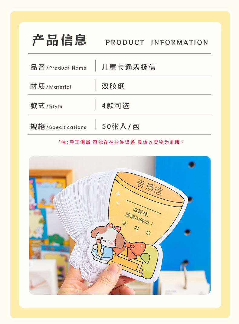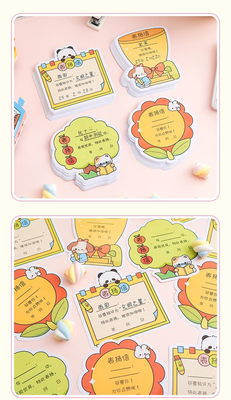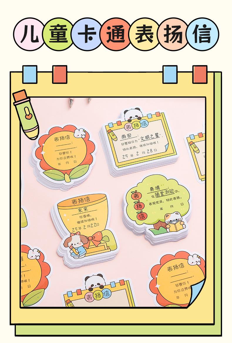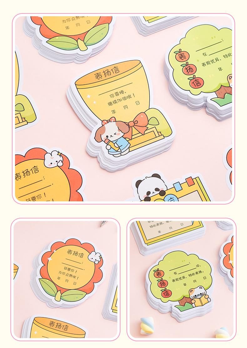 Carta de elogio de caricatura de jardín de infantes para maestro de clase Maestro general anima a los niños pequeños Certificado de elogio Premios para alumnos de primer grado