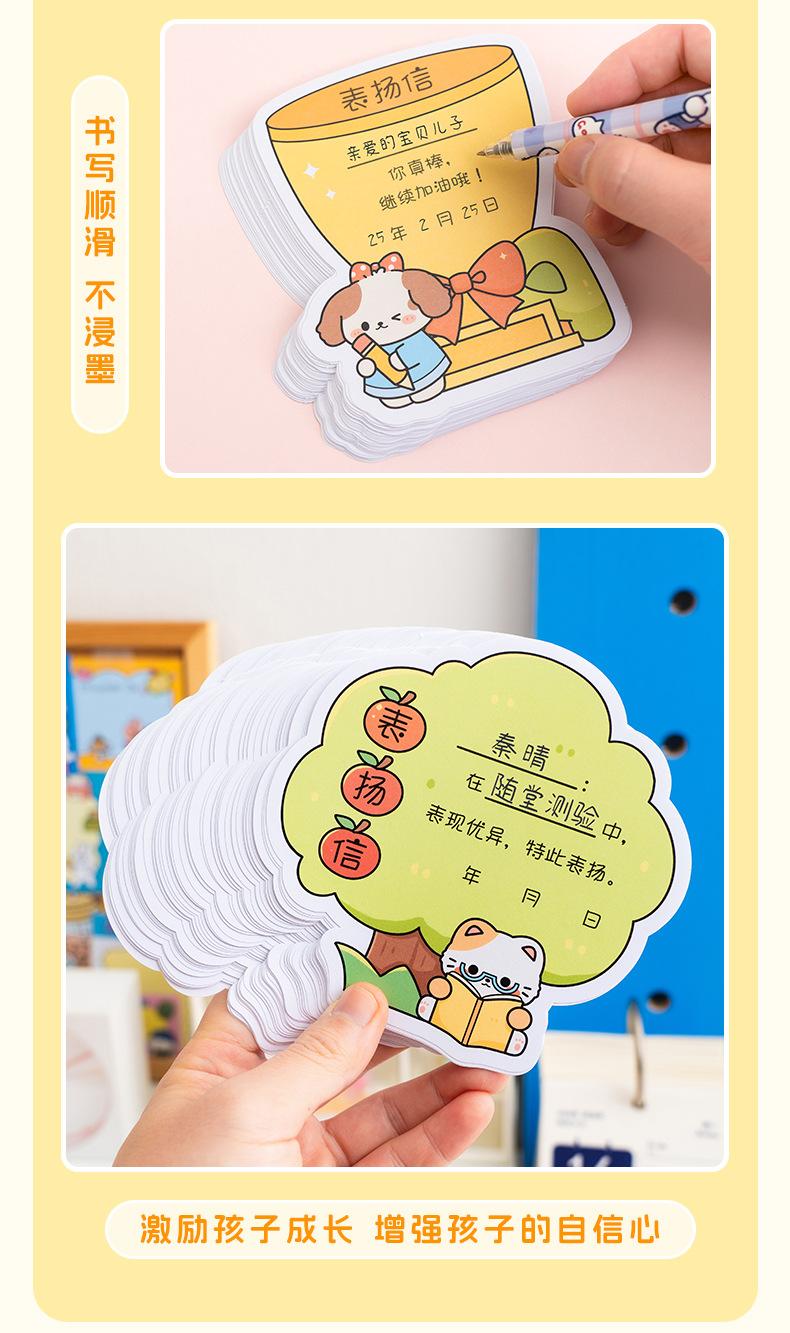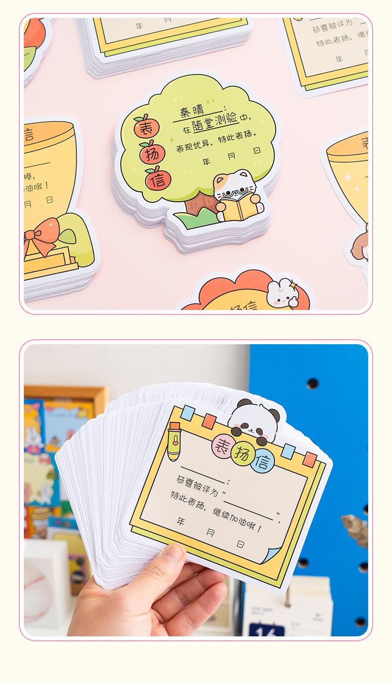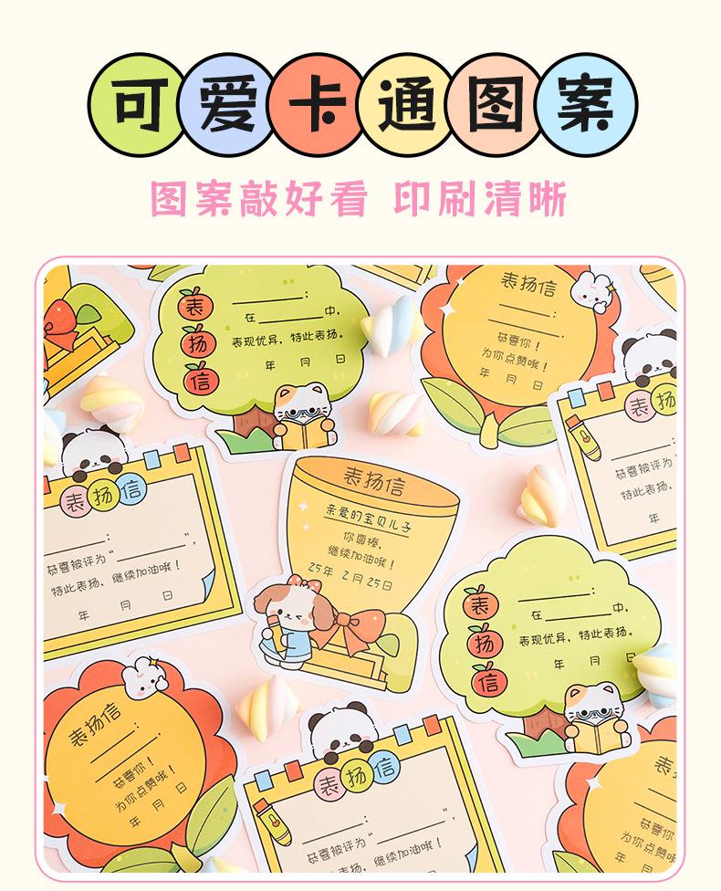 Carta de elogio de caricatura de jardín de infantes para maestro de clase Maestro general anima a los niños pequeños Certificado de elogio Premios para alumnos de primer grado