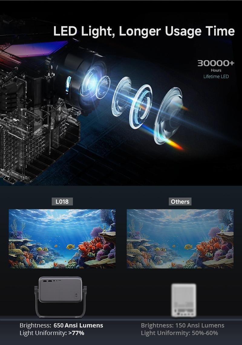 Proyector Transfronterizo L018 Proyector HD 4K Cine en Casa Proyector de Video Proyección Inalámbrica Proyector para Juegos Educación