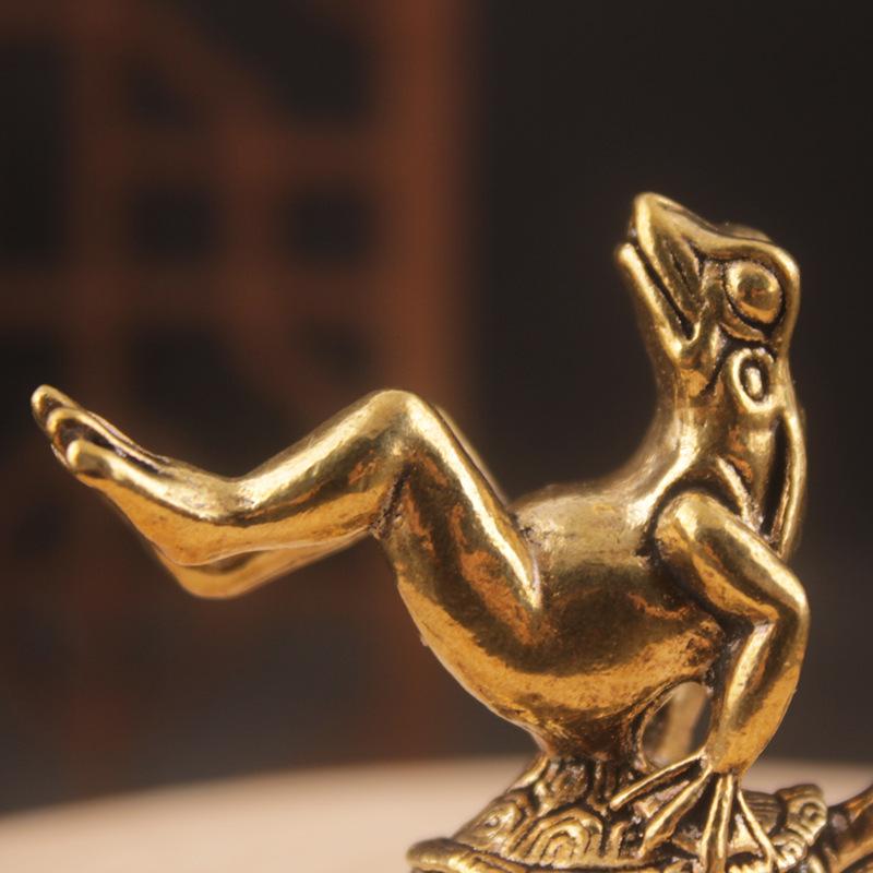 Microtallado de latón puro anti-antiguo con forma de tortuga y rana, decoración de escritorio para el hogar, inserto aromático creativo para mascotas de té, artículos de bronce antiguo