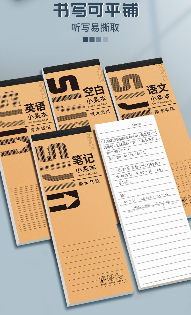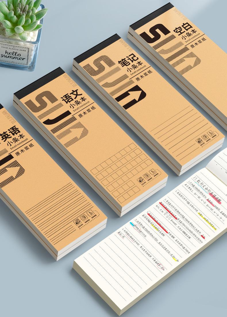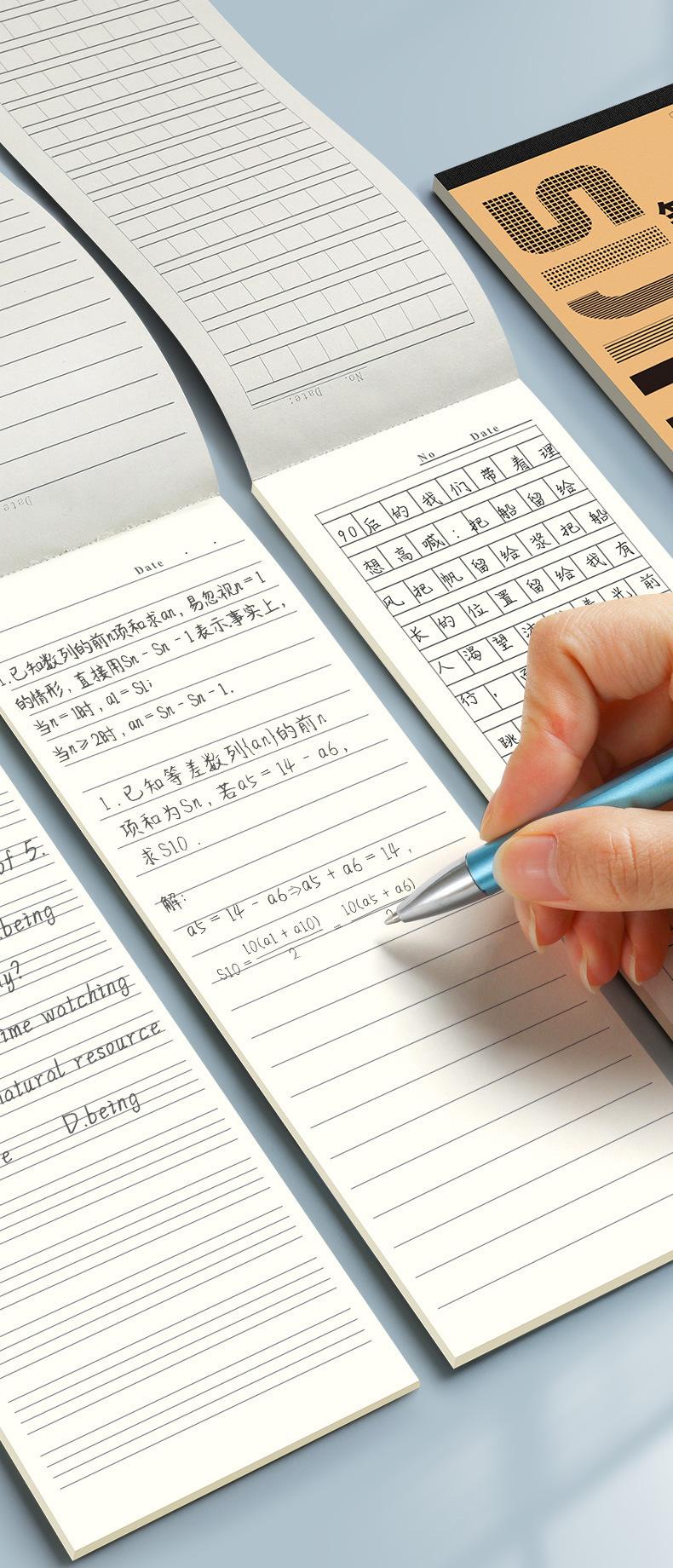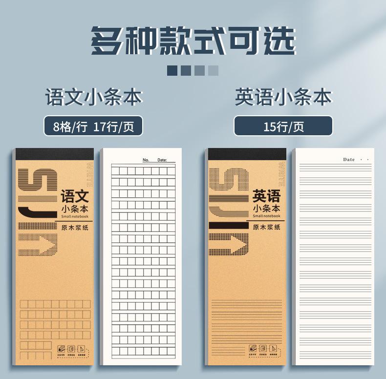 Cuaderno de tiras pequeñas, portátil y grueso, para estudiantes, para exámenes en el aula, cuaderno de notas en chino e inglés, cuaderno de papel manuscrito.