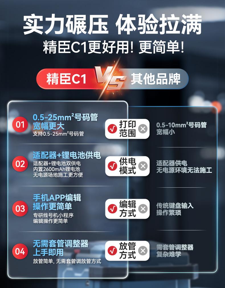 Jingchen C1 Tubo Numérico Bluetooth Tubo Termorretráctil Funda de PVC Máquina Numeradora de Cables Electrónicos Impresora Digital Impresora Térmica