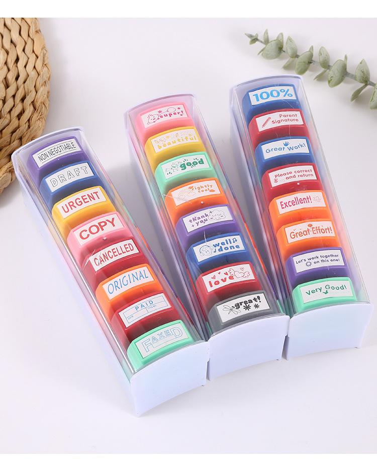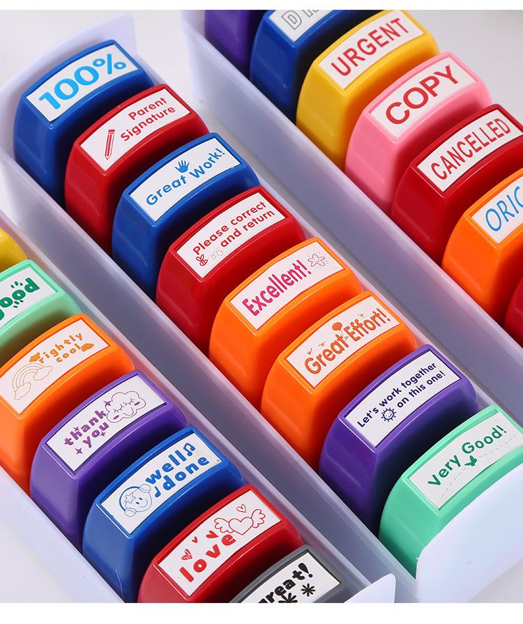 Compra Fábrica Inglés Comentarios Sello Maestros Interesante Elogio Sello Fotosensible Niños Animan Traje de Sello de Plástico Al Por Mayor al por mayor en Joom.pro