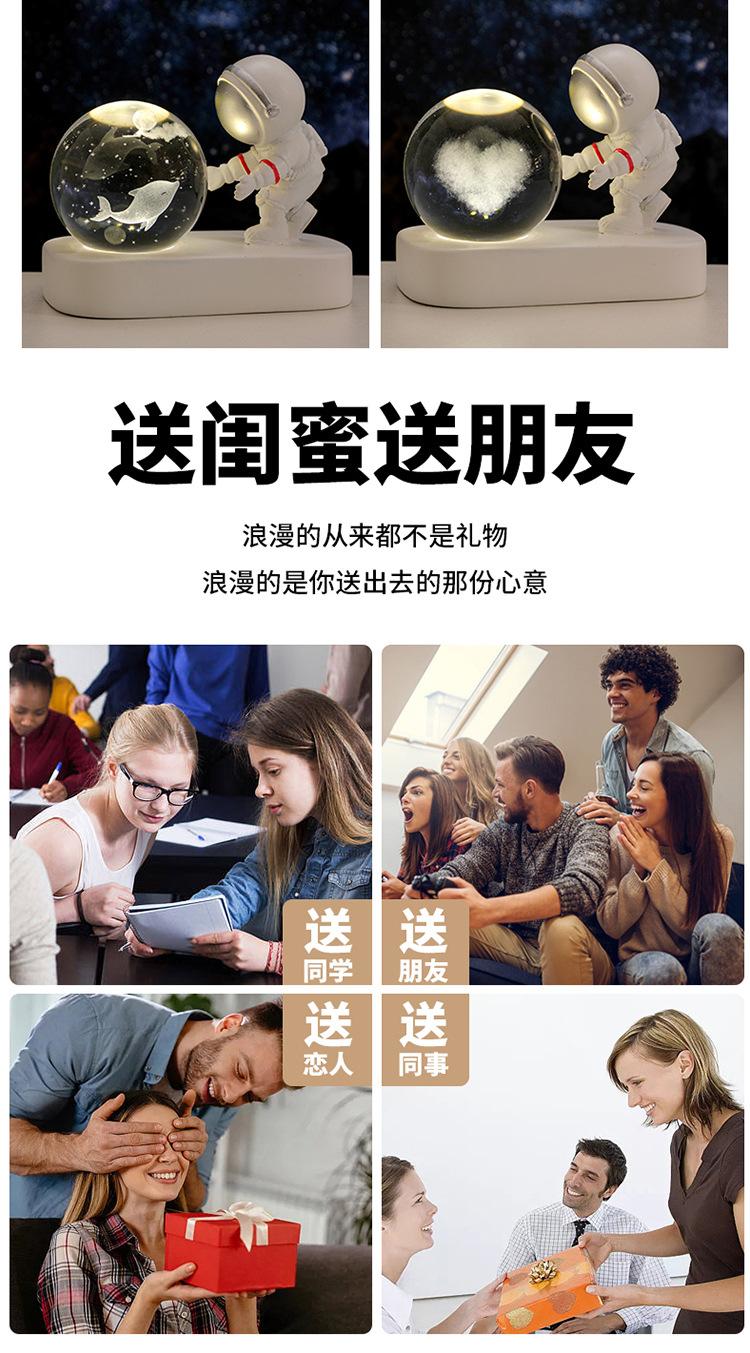Lámpara de noche con forma de astronauta, bola de cristal luminosa, base de escritorio, pequeños adornos, decoración para habitación, regalo de cumpleaños.