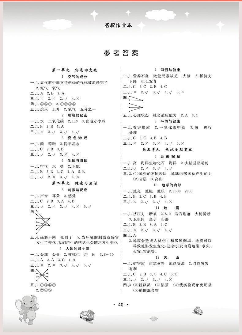 El primer volumen del quinto grado de ciencias para estudiantes de primaria es la formación sincrónica de libros de ejercicios para escuelas famosas en Hebei.