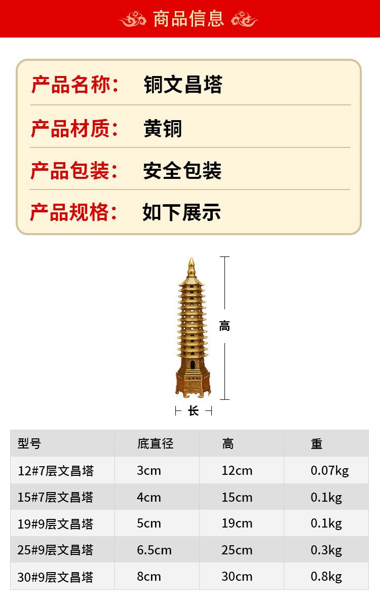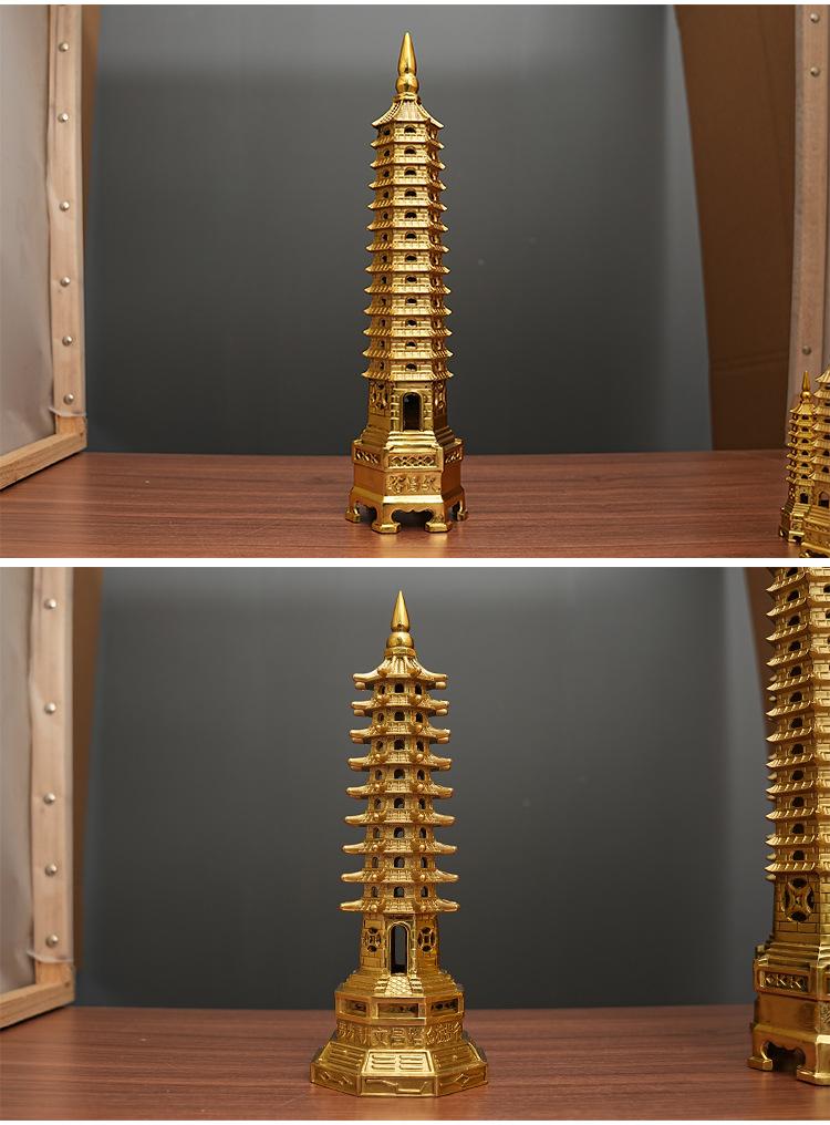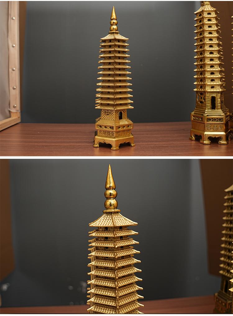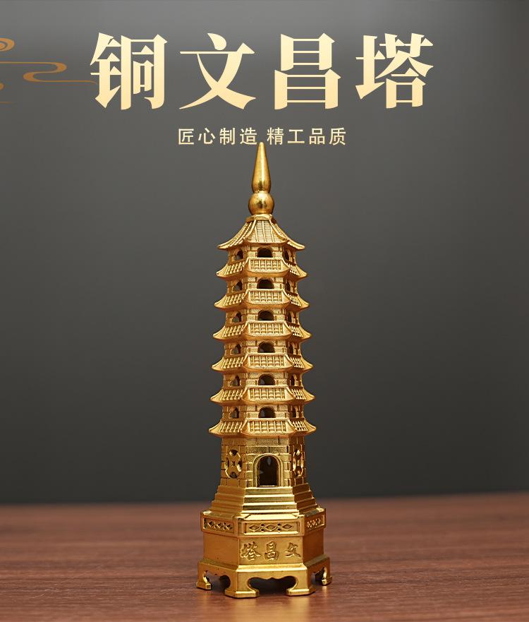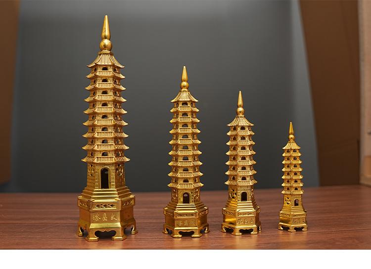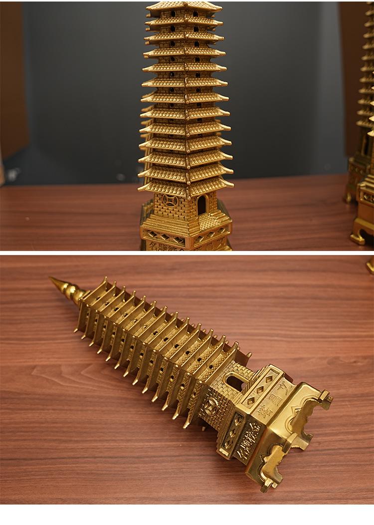Torre Wenchang de latón, cobre puro, 7 capas, adornos de torre Wenchang, decoración de escritorio de oficina, artesanías, regalos, fábrica de cabello