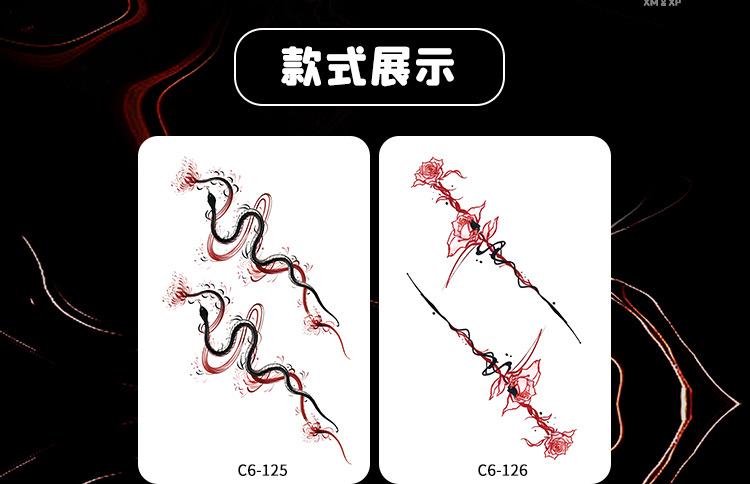 Tatuaje de serpiente Guofeng Plum Blossom para mujer, resistente al agua, de larga duración, para brazo, espalda, sexy, cintura, que cubre cicatrices, tinta de color.