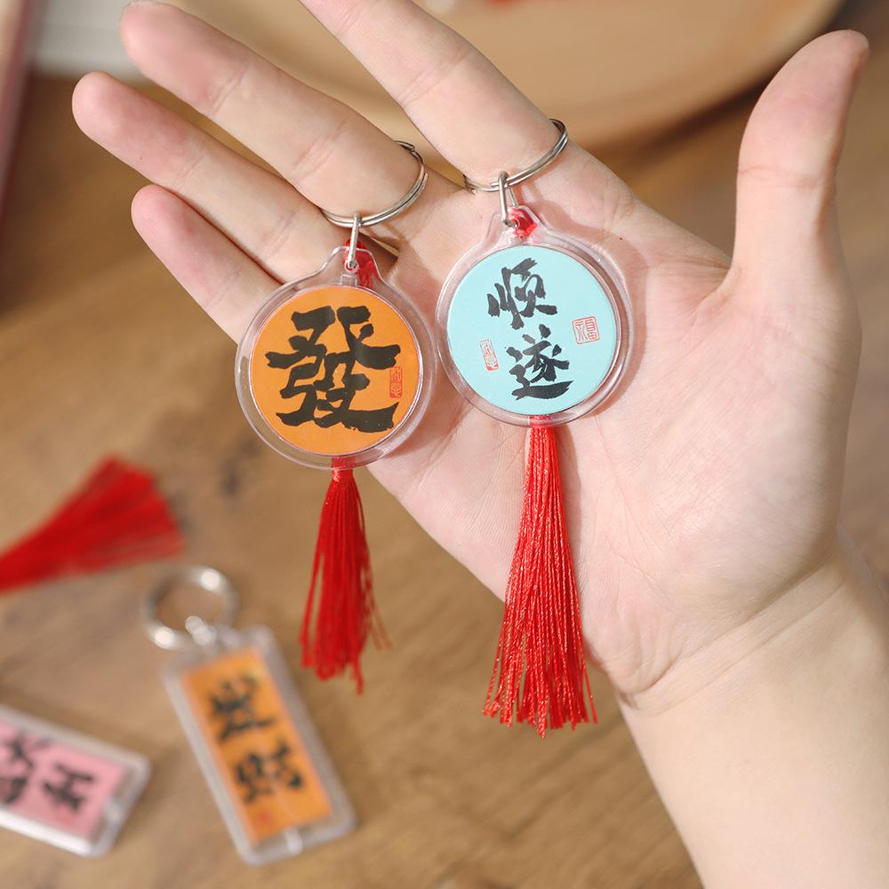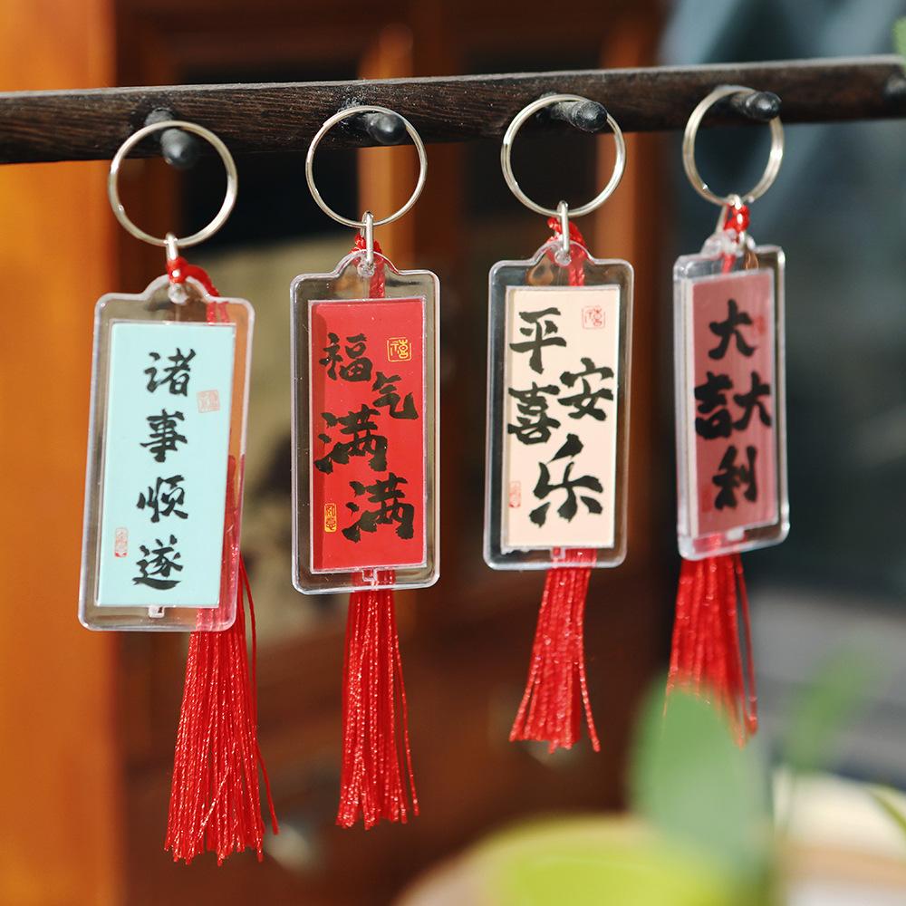 Llavero Ping An Joy Creativo Texto Bendición Amuleto Colgante Regalo de Año Nuevo Borla Estilo Nacional