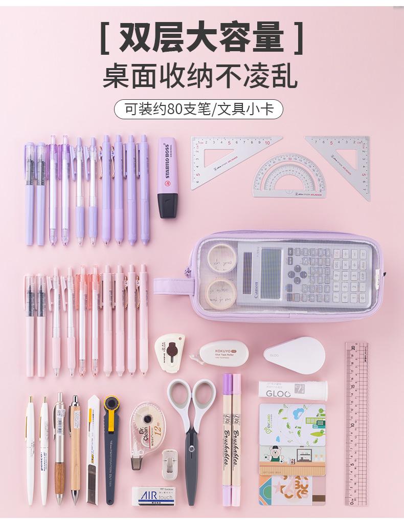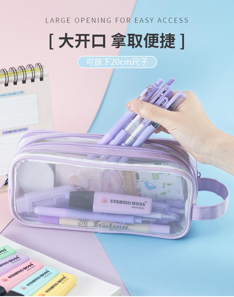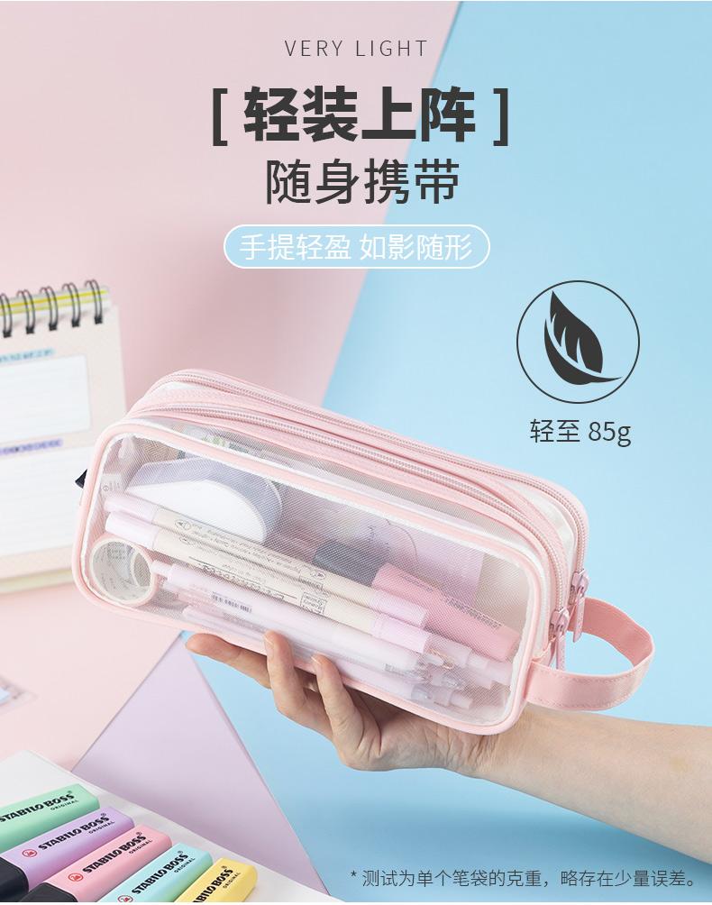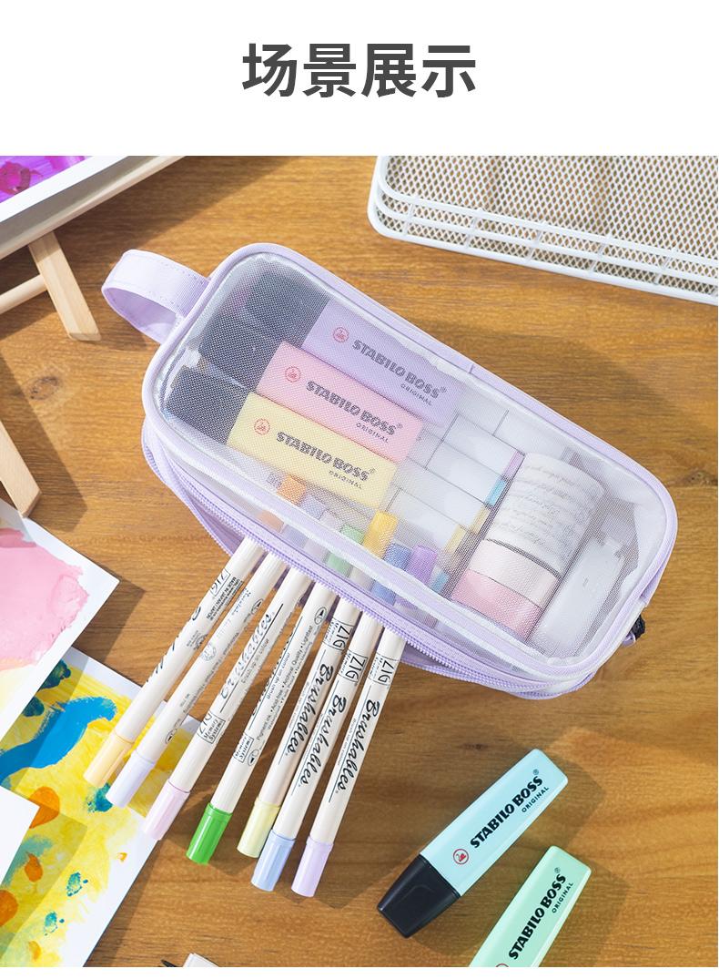 Bolsa de Lápices de Malla Transparente para Niñas, Papelería de Gran Capacidad, Estuche de Lápices Lindo para Estudiantes de Primaria, Útiles Escolares