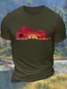 2025 Nueva Camiseta Europea y Americana Transfronteriza de Estación Independiente con Patrón de Atardecer de Guitarra Talla Europea Talla Grande Cuello Redondo Estampada para Hombre