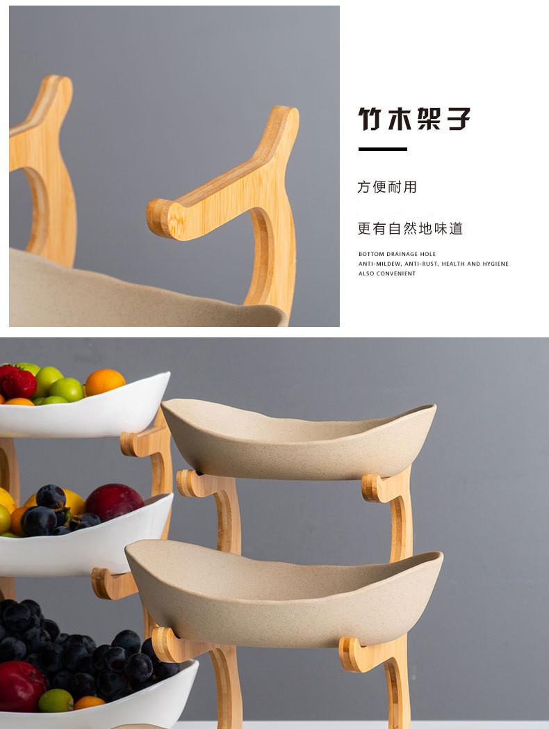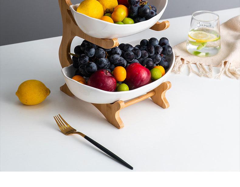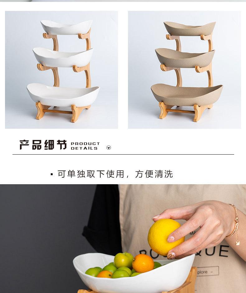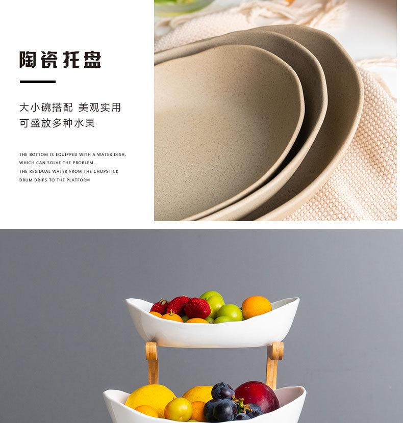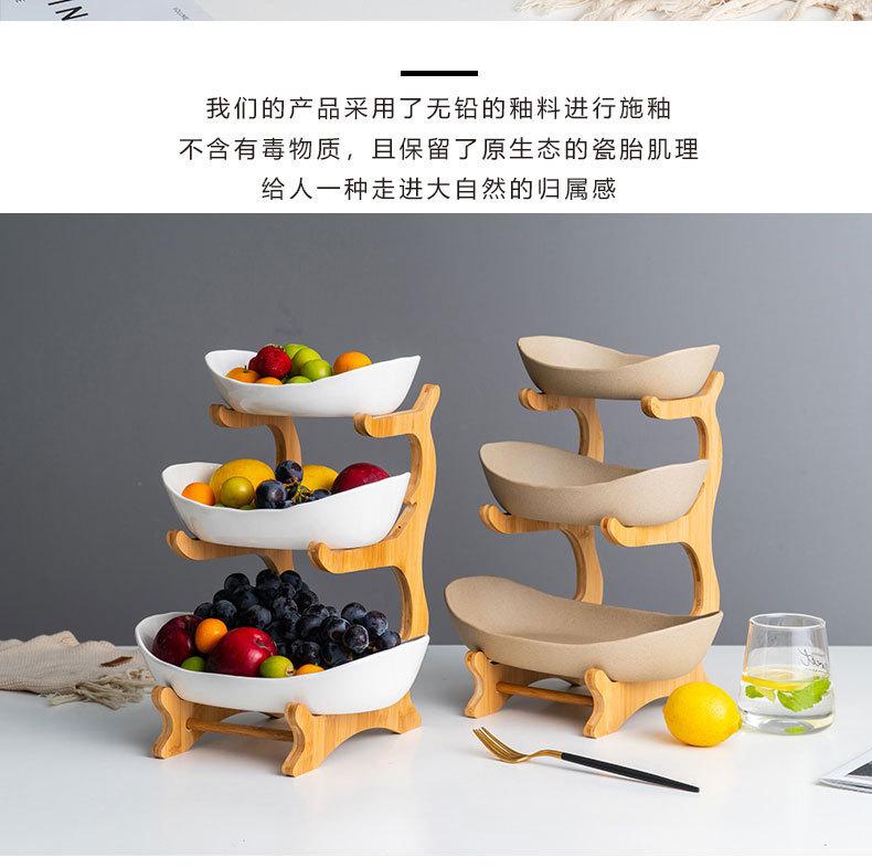 Plato de fruta de cerámica nórdico plato de fruta creativo madera de bambú estilo japonés sala de estar mesa de centro frutero hogar plato de fruta de tres pisos