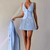 Moda europea y americana 2025: Top de dos piezas con escote en V y minifalda plisada para mujer