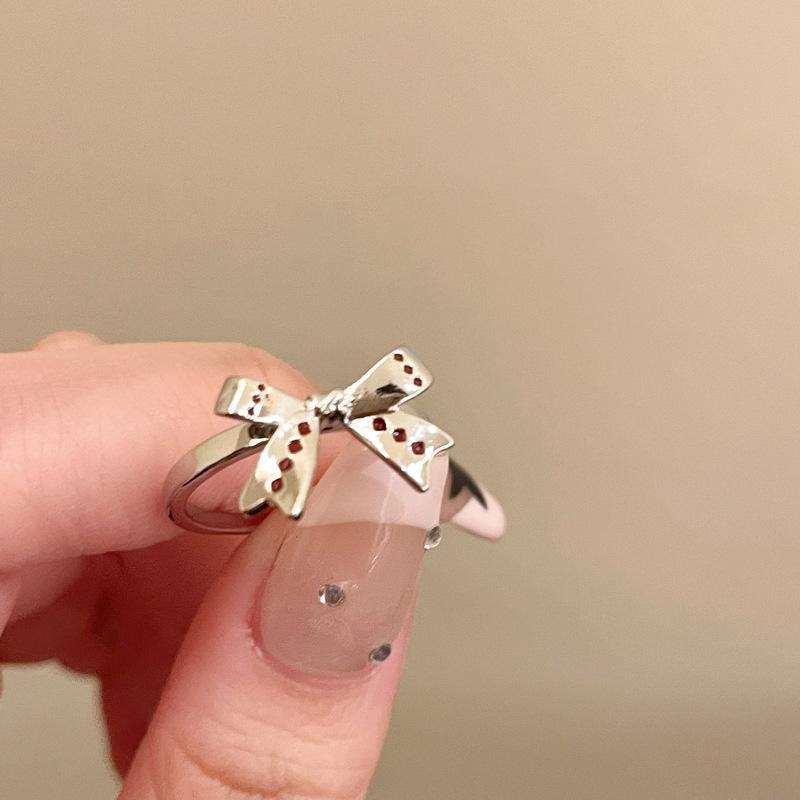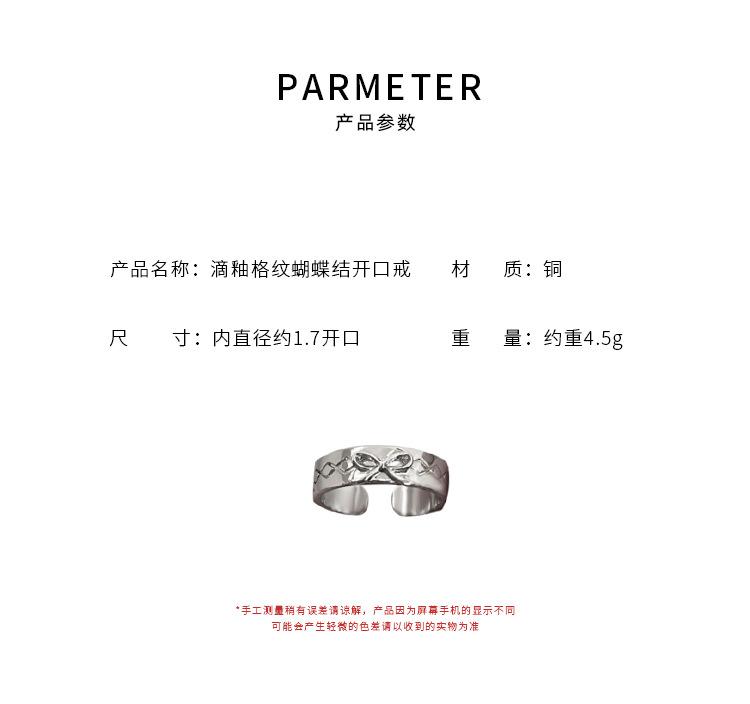 Drop glaze plaid bow open ring, approximately 4.5g in weight
