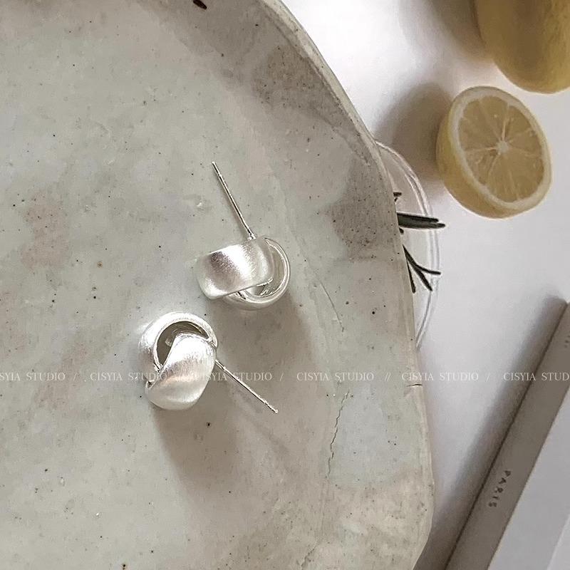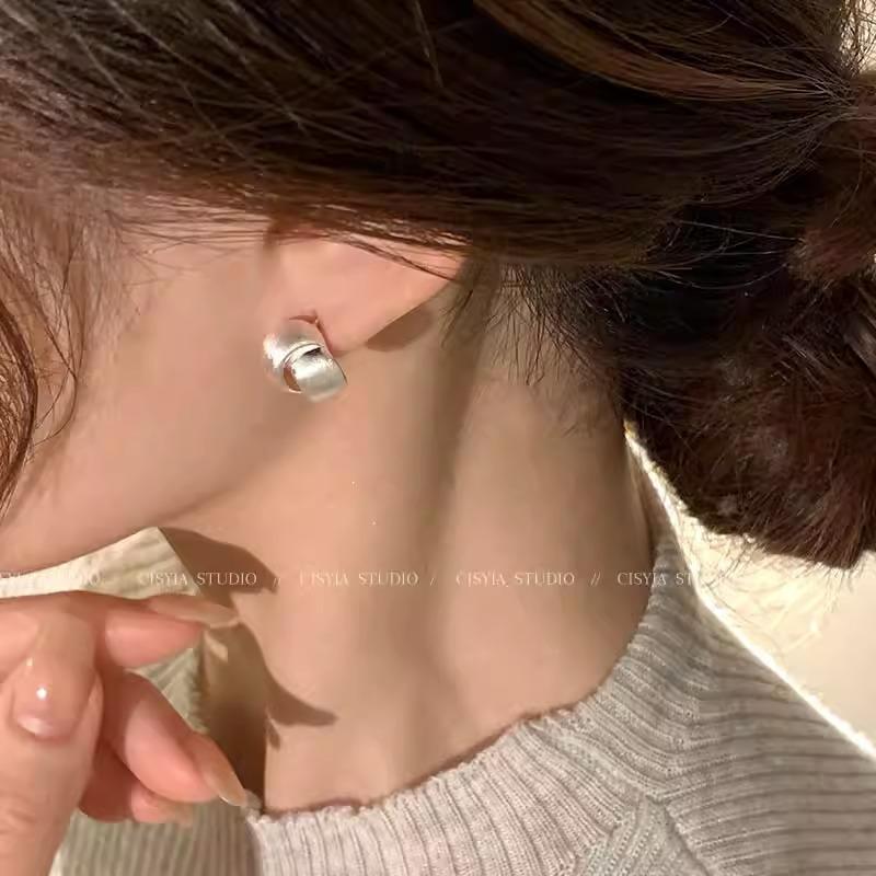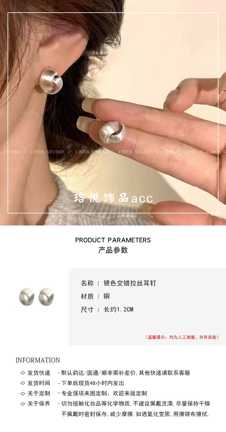 Pendientes de plata s925 con diseño irregular de aguja cepillada, pendientes femeninos de diseño de nicho, pendientes sencillos de estilo frío con temperamento ins
