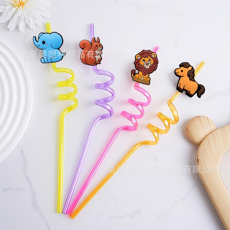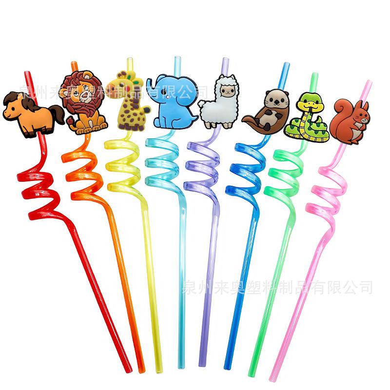 Venta Caliente Transfronteriza Nuevo PVC Pegamento Suave Tapa de Pajita Accesorios Personalizados en stock Manga de Pajita de Animales de Dibujos Animados Clip para Pajita