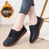 Zapatos de tela de Beijing antiguos para mujer, pequeños, de cuero, impermeables, antideslizantes, planos, de suela suave, para mamá, informales, para el trabajo
