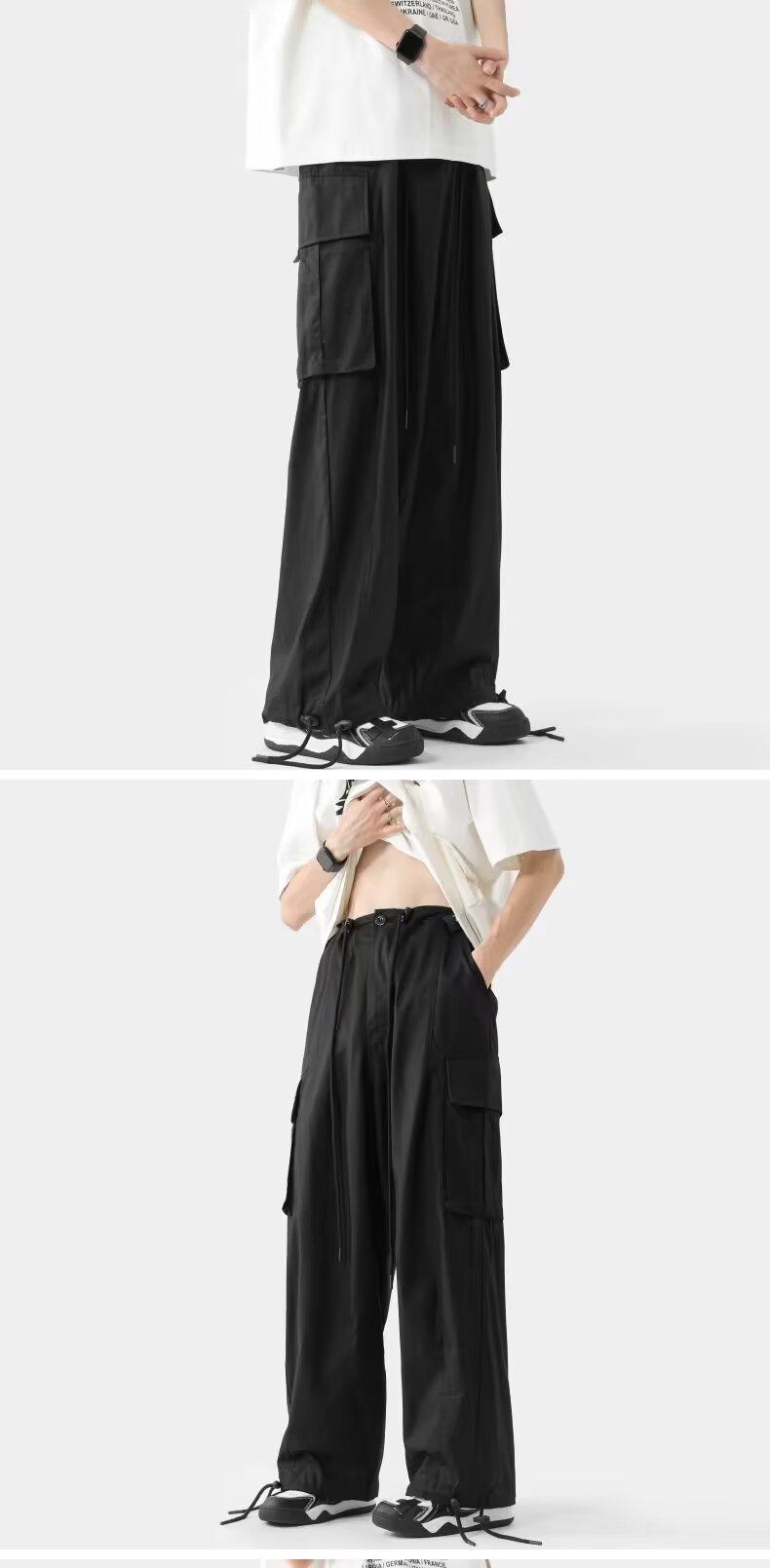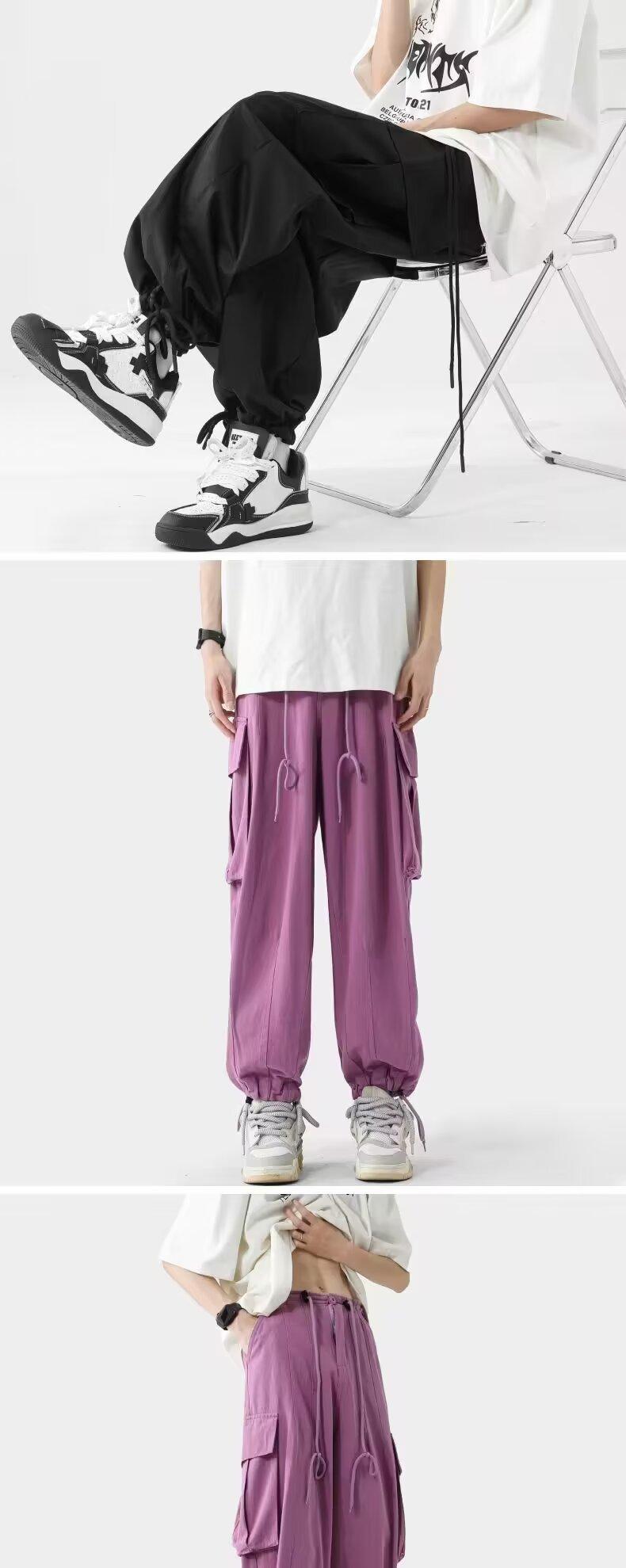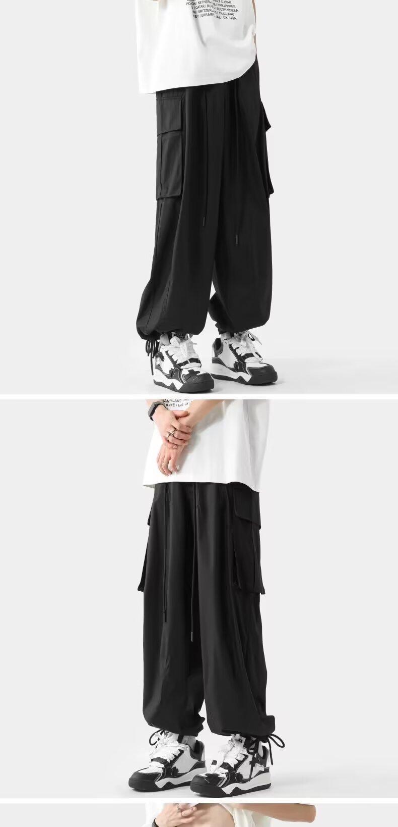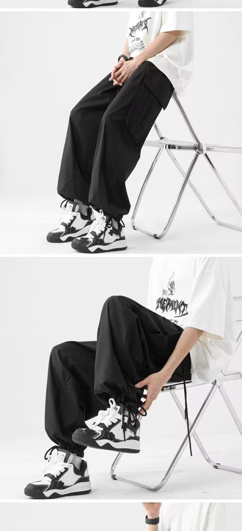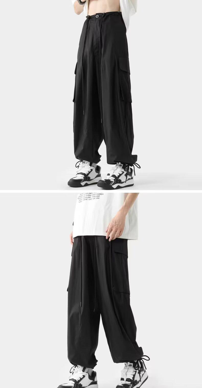 Compra Pantalones despeinados para hombre, primavera y otoño, estilo Hong Kong, marca de moda, holgados, con cordón, pantalones largos deportivos casuales de pierna ancha y elegantes. al por mayor en Joom.pro