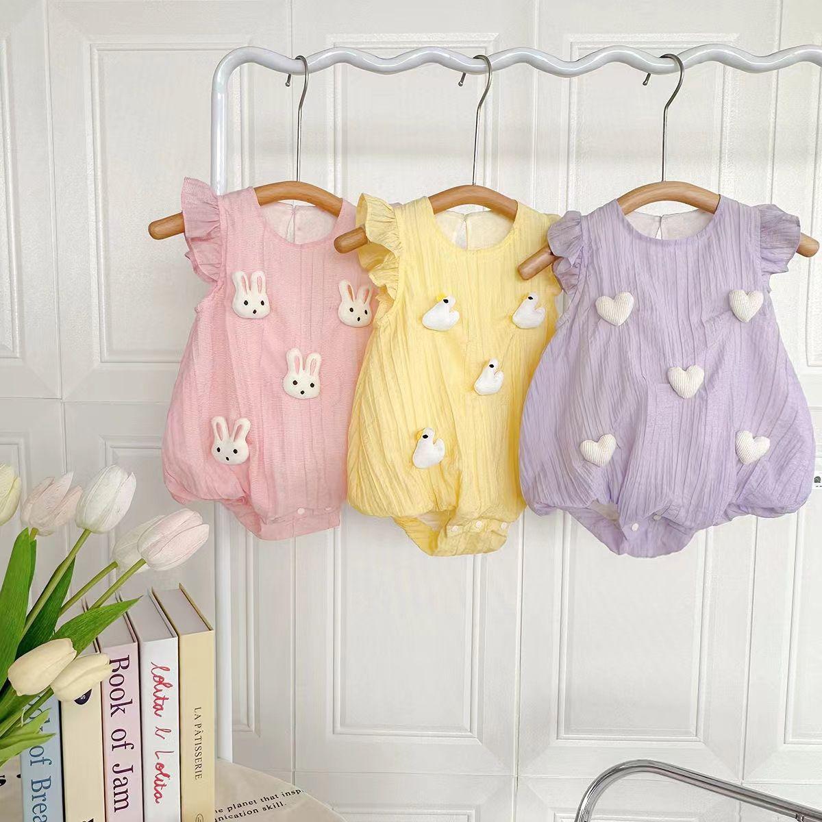 Nuevo Vestido Enterizo de Verano con Dibujos Animados para Bebé Vestido Delgado de Liebre para Bebé Niña Ropa Ligera de Verano de Manga Volante para Recién Nacido
