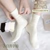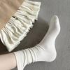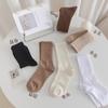 Calcetines blancos de mujer para otoño e invierno, de color liso, hasta media pantorrilla, de confinamiento, estilo japonés, con cordón, a la moda, para mujer