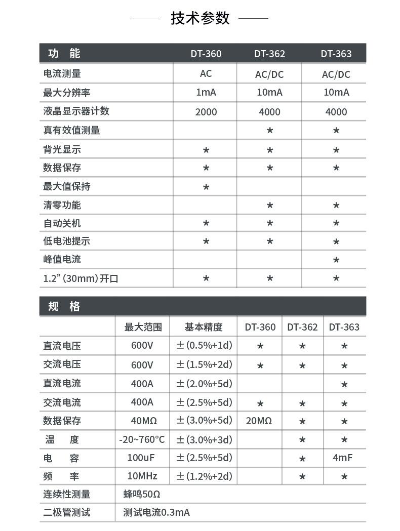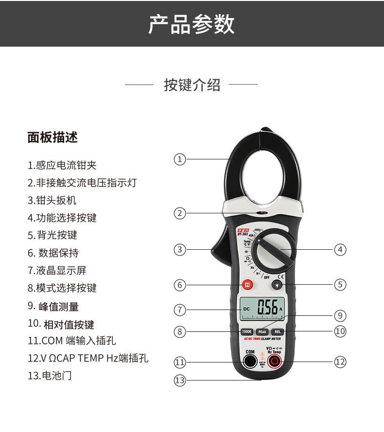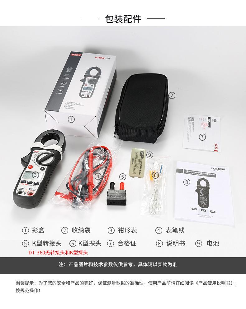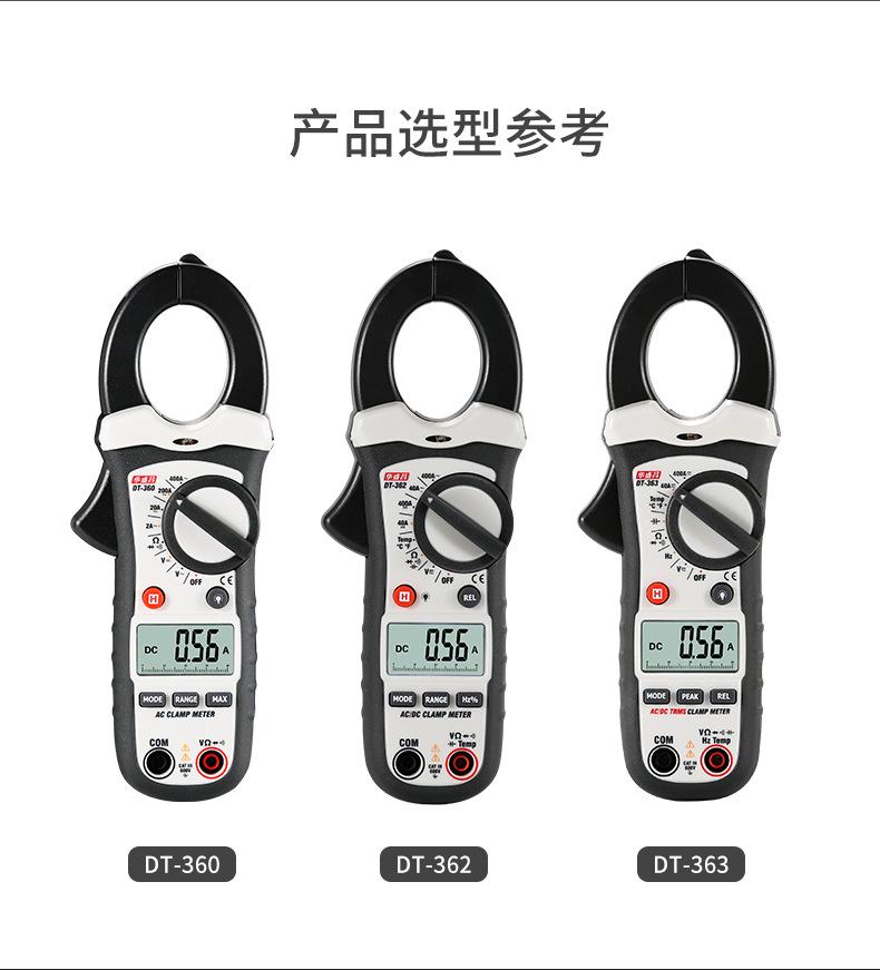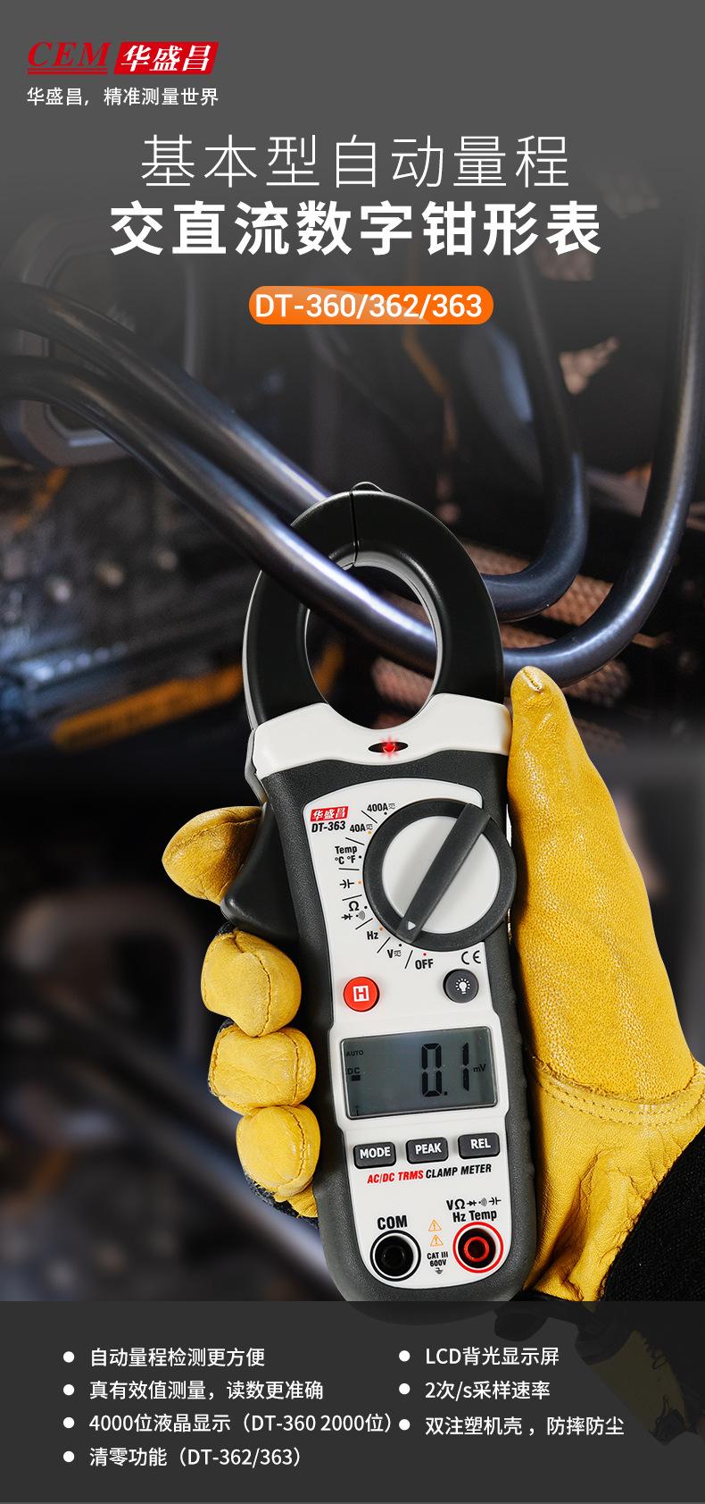 Pinza amperimétrica digital CEM Huashengchang DT-360, amperímetro CA/CC de alta precisión, para electricistas de mantenimiento DT-362