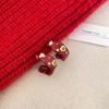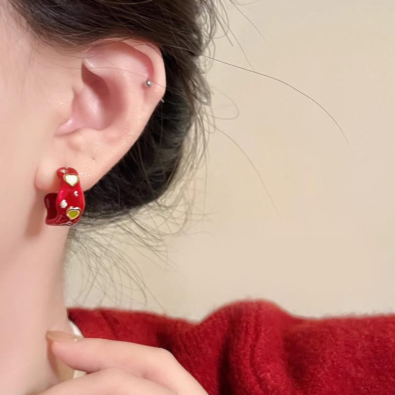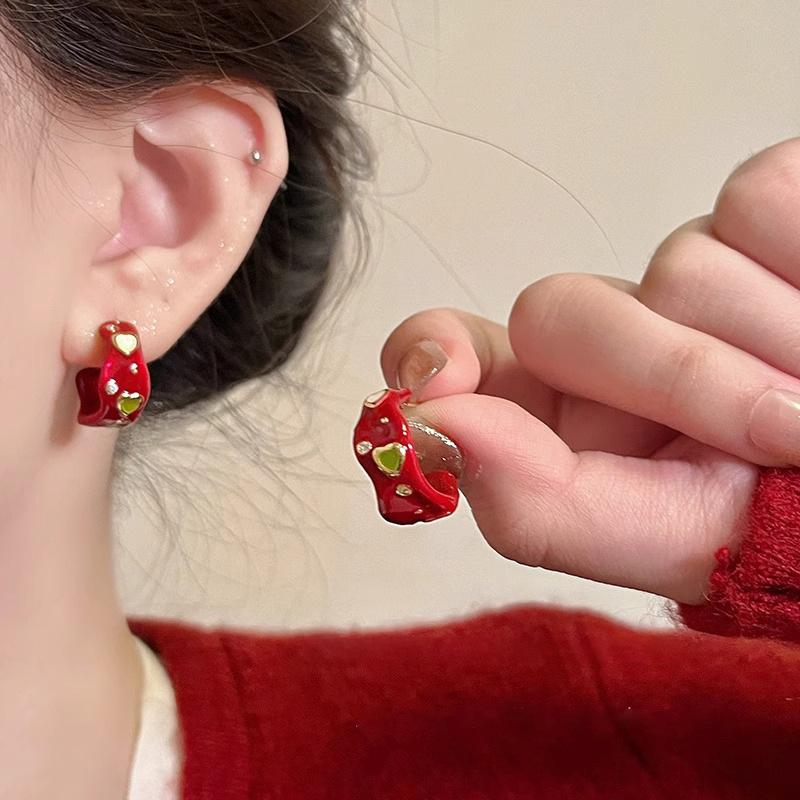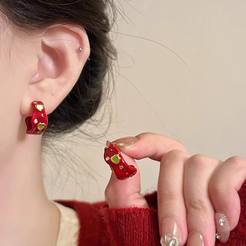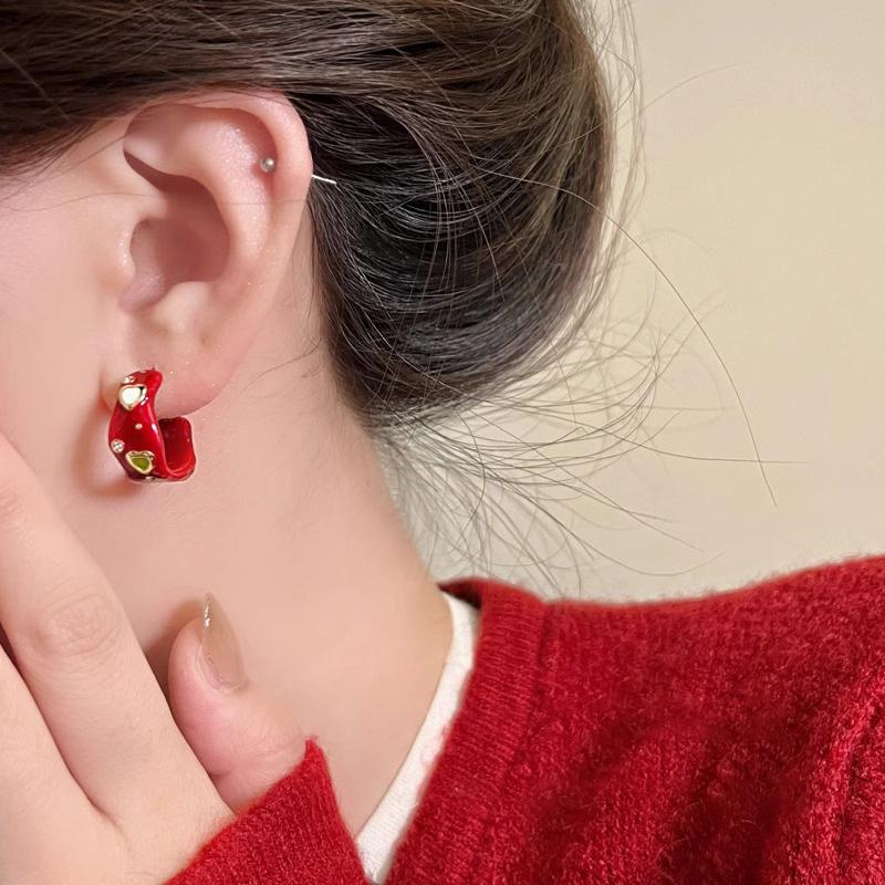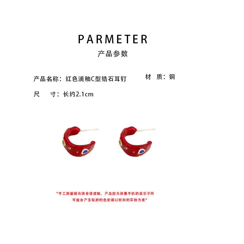 Red drop glaze c-shaped zircon earrings