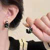 Black dripping glaze c-shaped zircon earrings