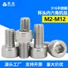 Tornillo de cabeza cilíndrica hexagonal de acero inoxidable 316 DIN912, perno de tornillo hexagonal interior moleteado con cabeza ahuecada M2M12