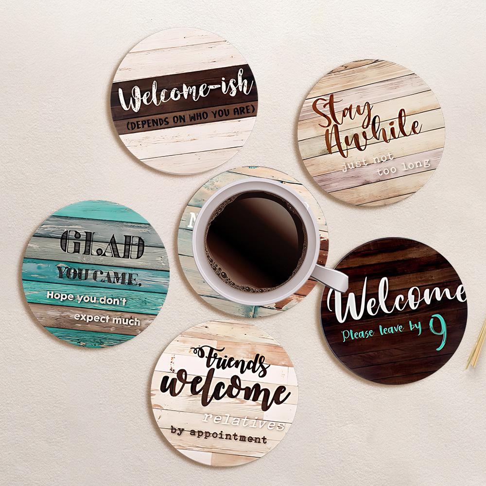 Juego de seis posavasos de madera para decoración navideña transfronteriza, muy popular, para el hogar, para cafetería