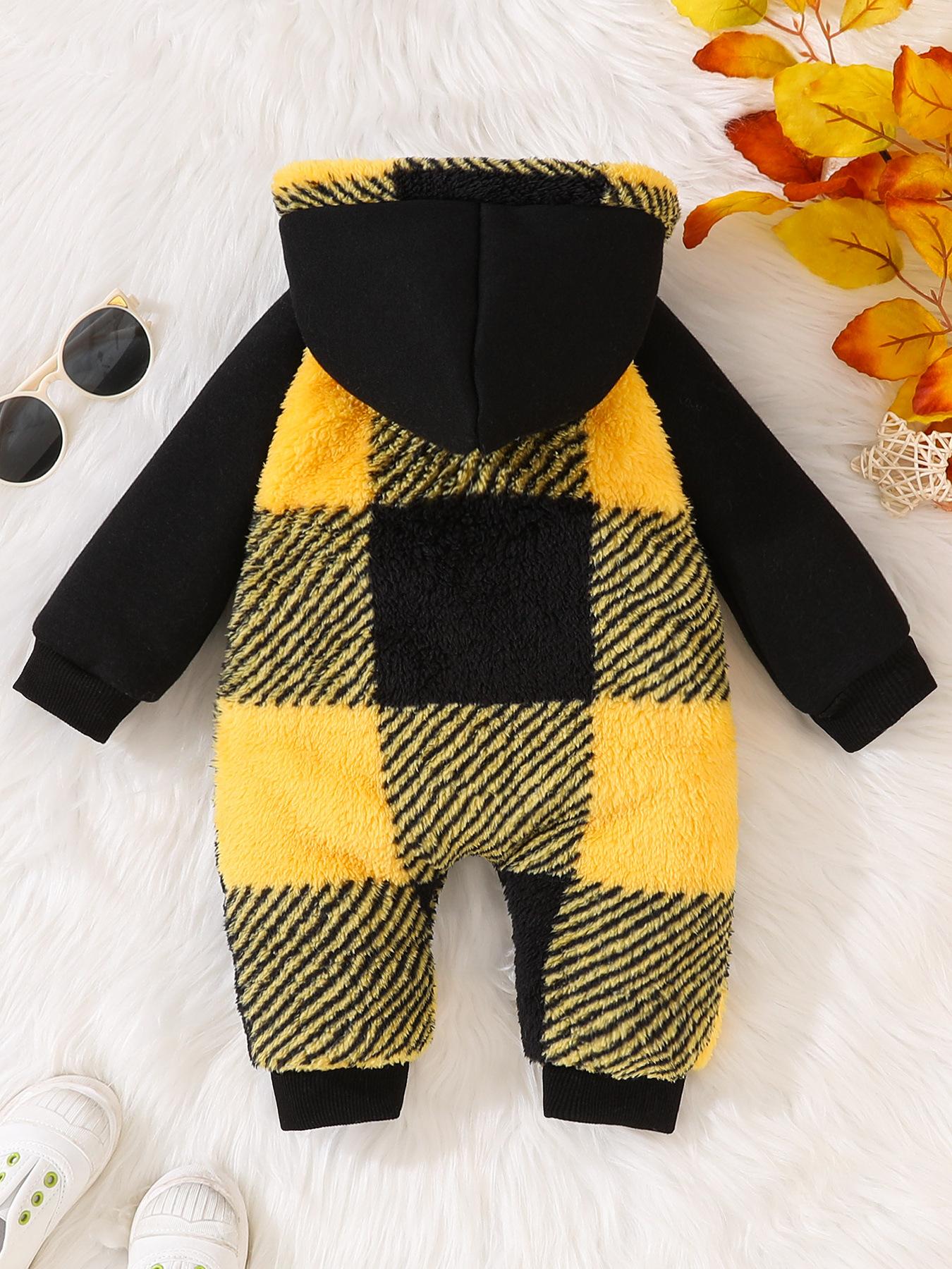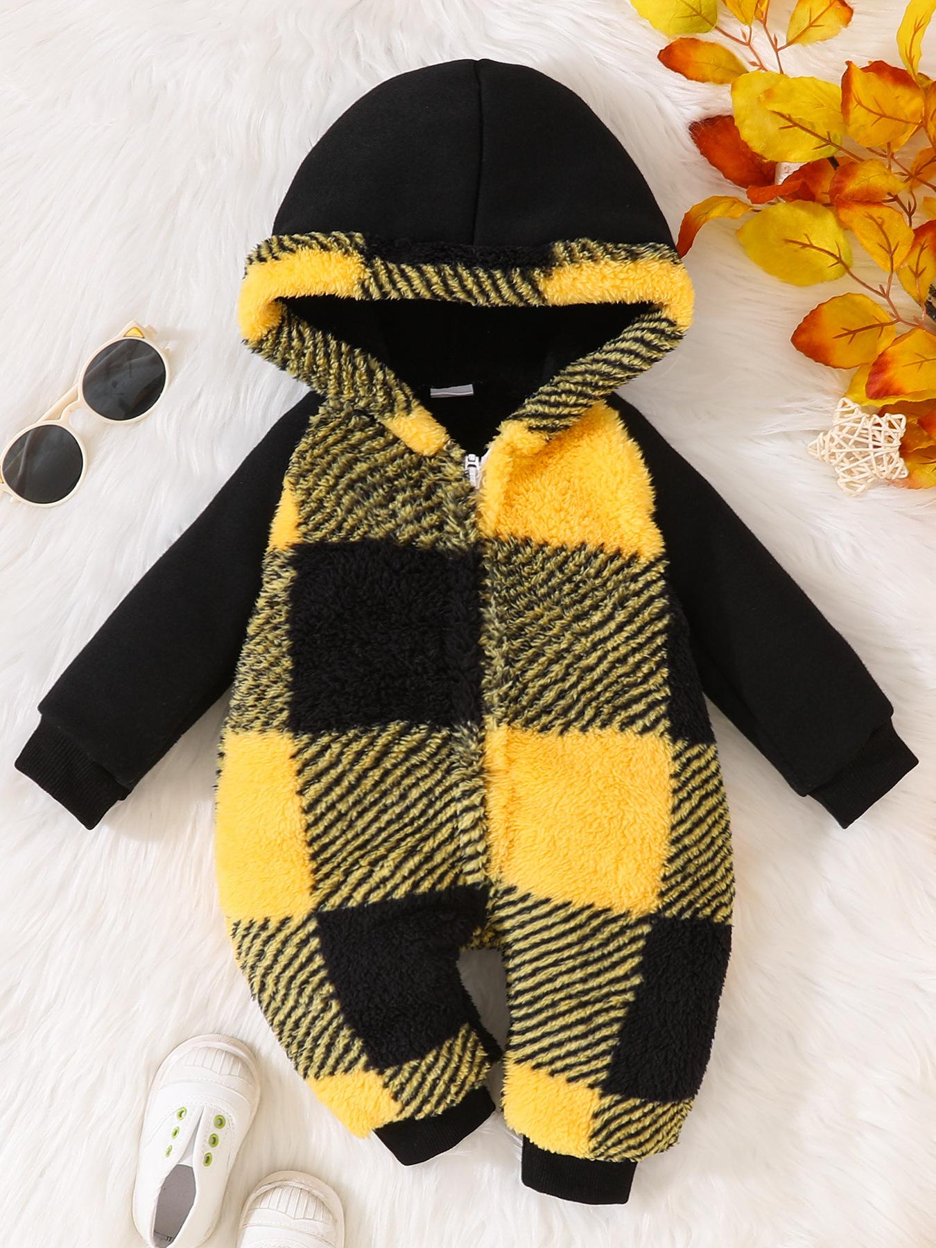 2024 Nuevo Otoño e Invierno Transfronterizo para Bebés y Niños Pequeños Monos de Manga Larga y Pierna Larga Ropa Exterior con Capucha a Cuadros Ropa para Gatear Ropa para Niños