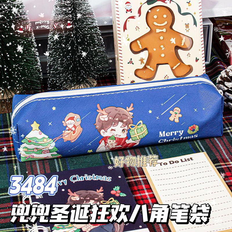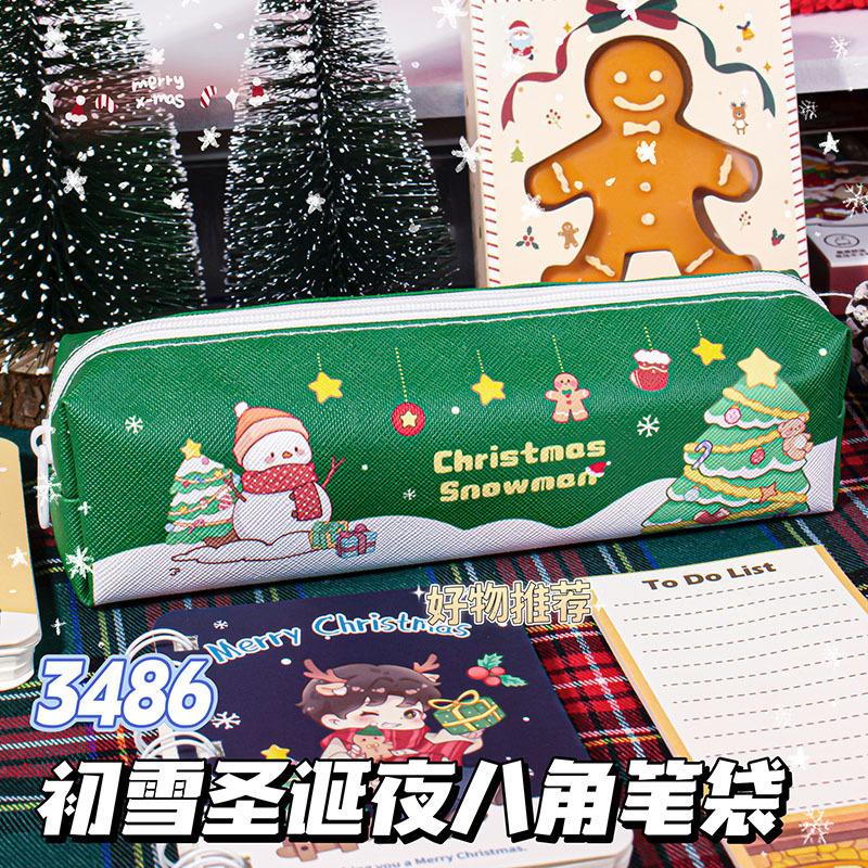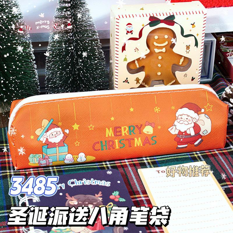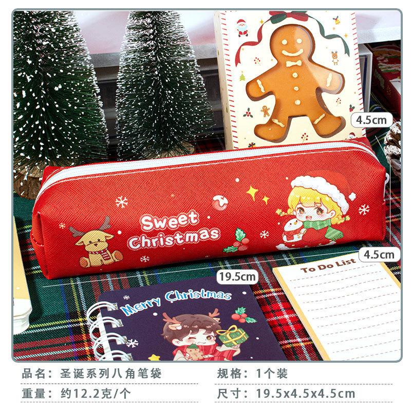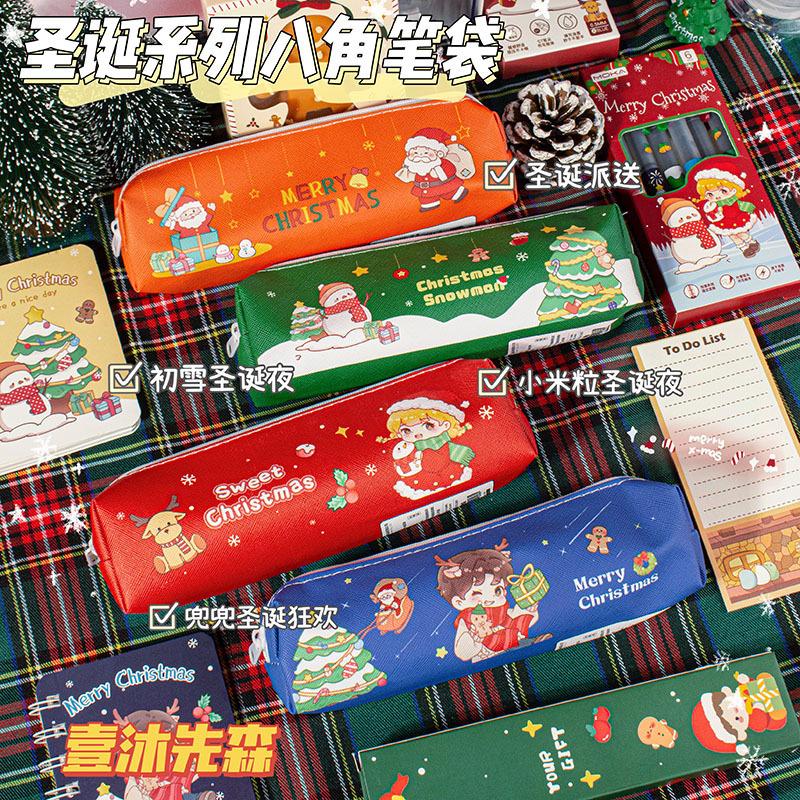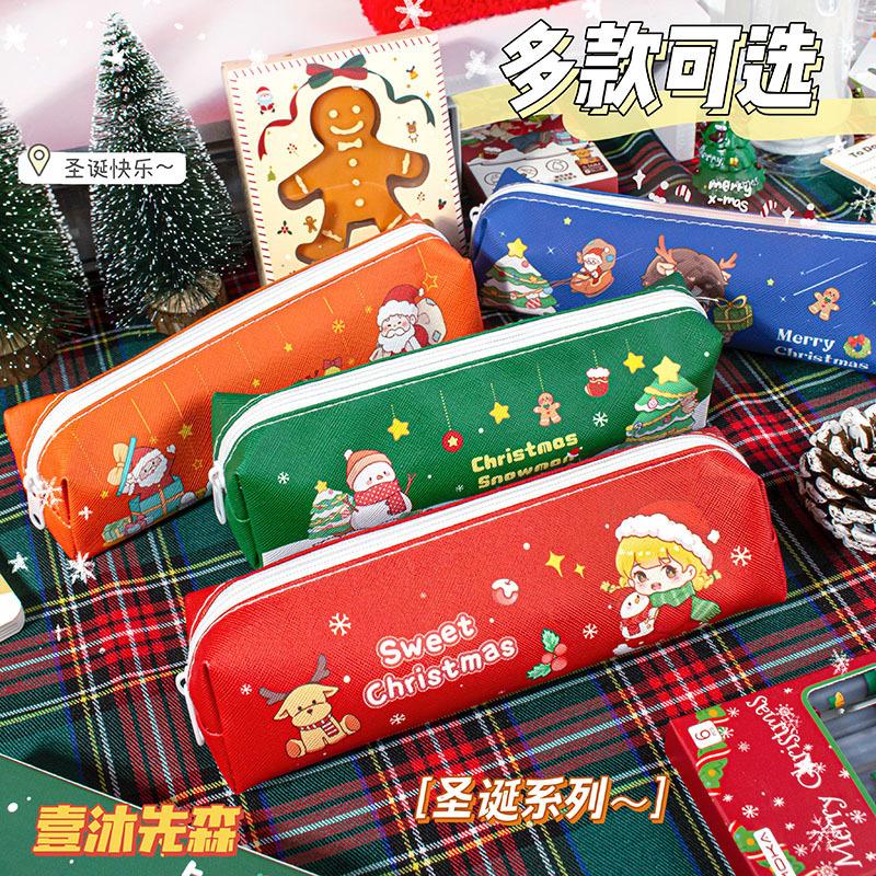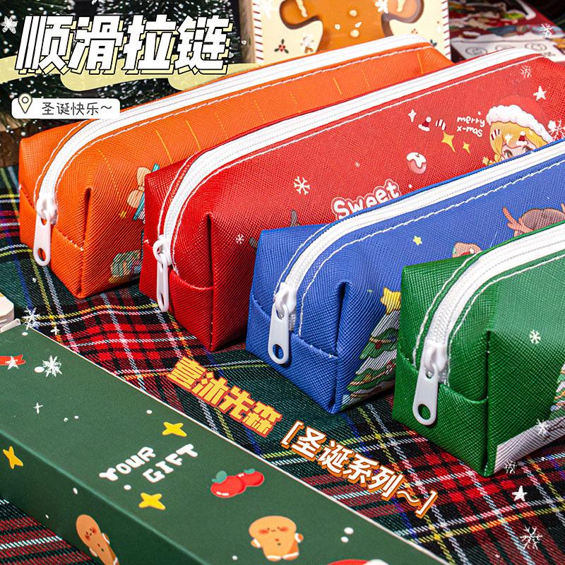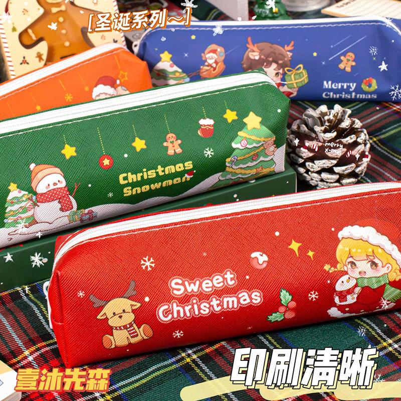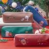 Estuche de Lápices de Papelería Navideña Material de Cuero Impermeable Resistente al Desgaste Estuche de Lápices de Gran Capacidad Regalo para Estudiantes Regalo Institucional