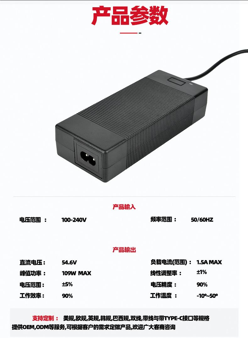 Default delivery 5525 us standard ac can be customized, 54.6v1.5a standard 2a-sealed us standard dc5525, 54.6v...