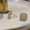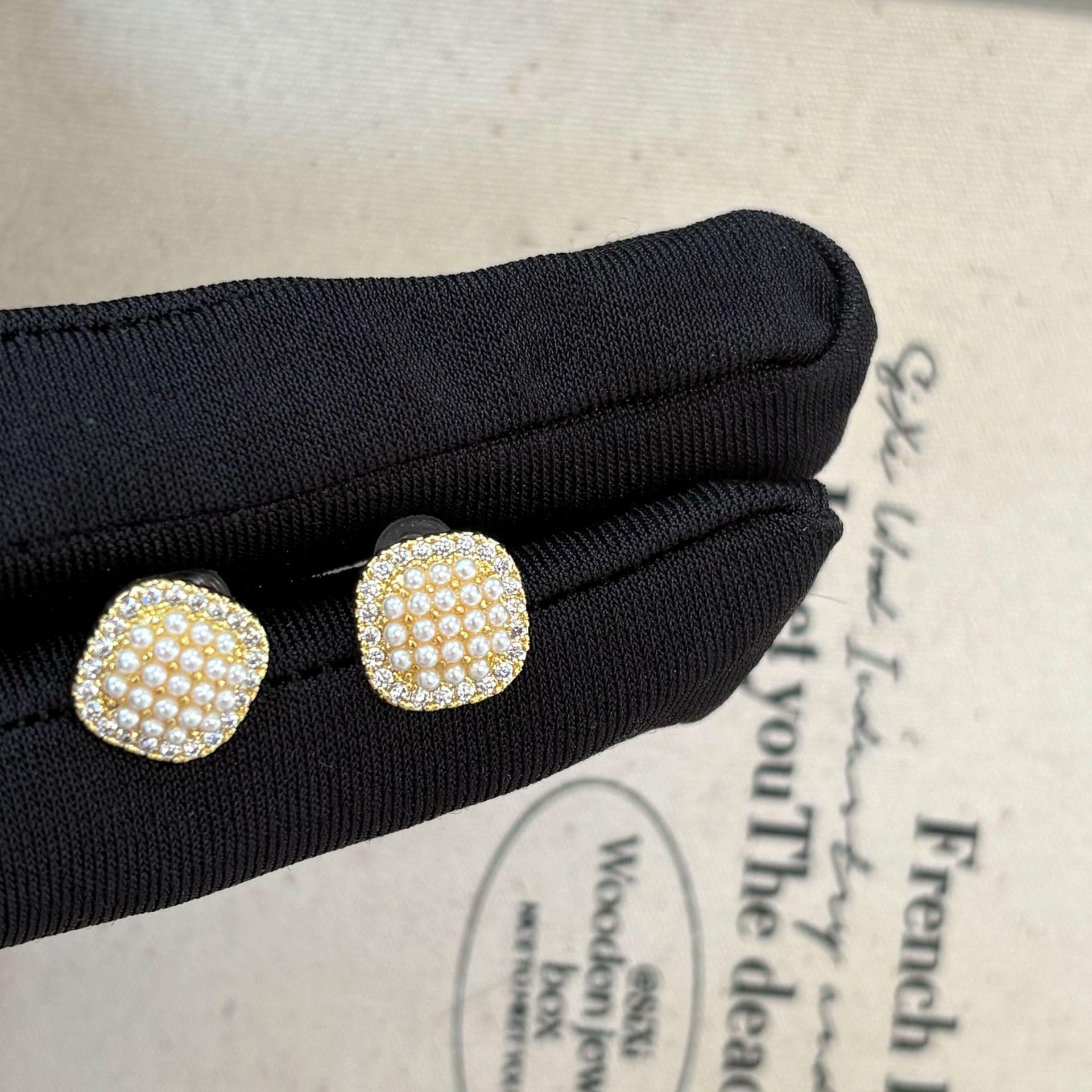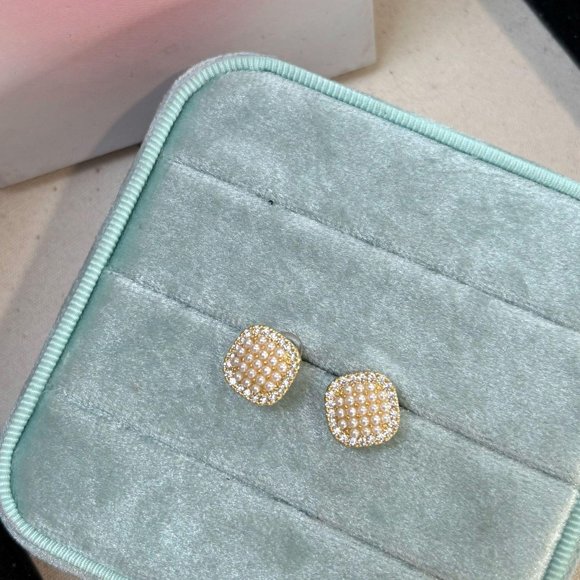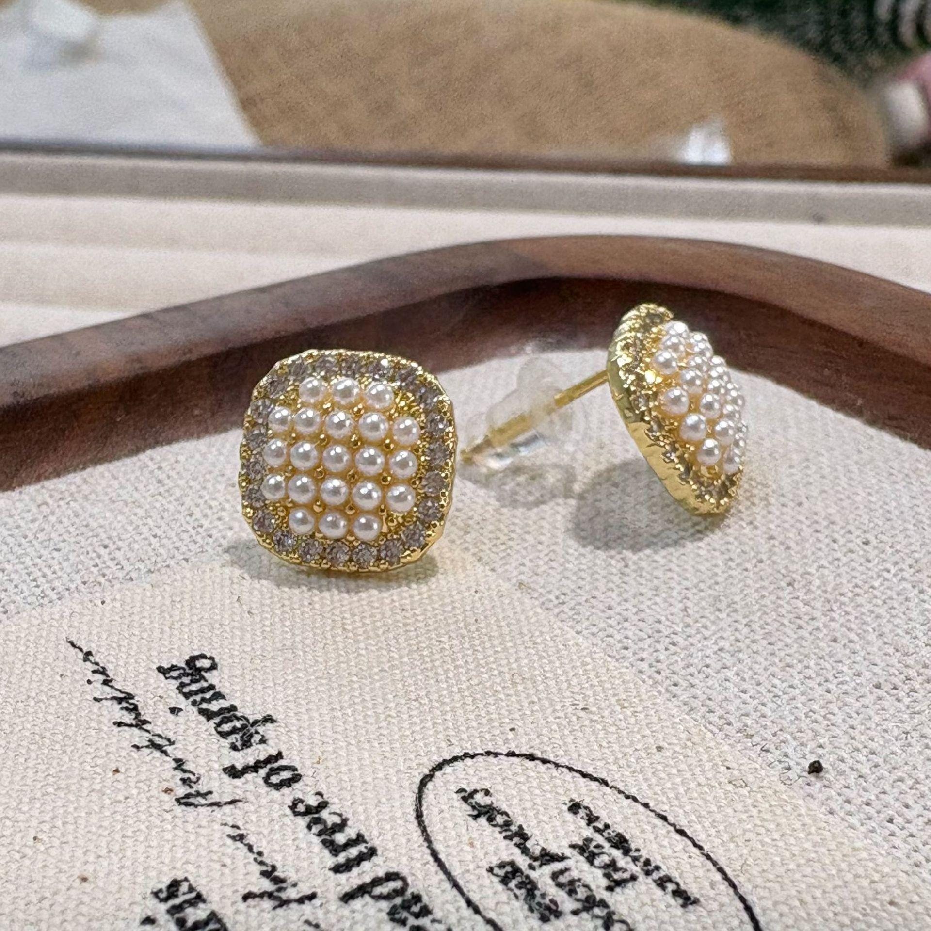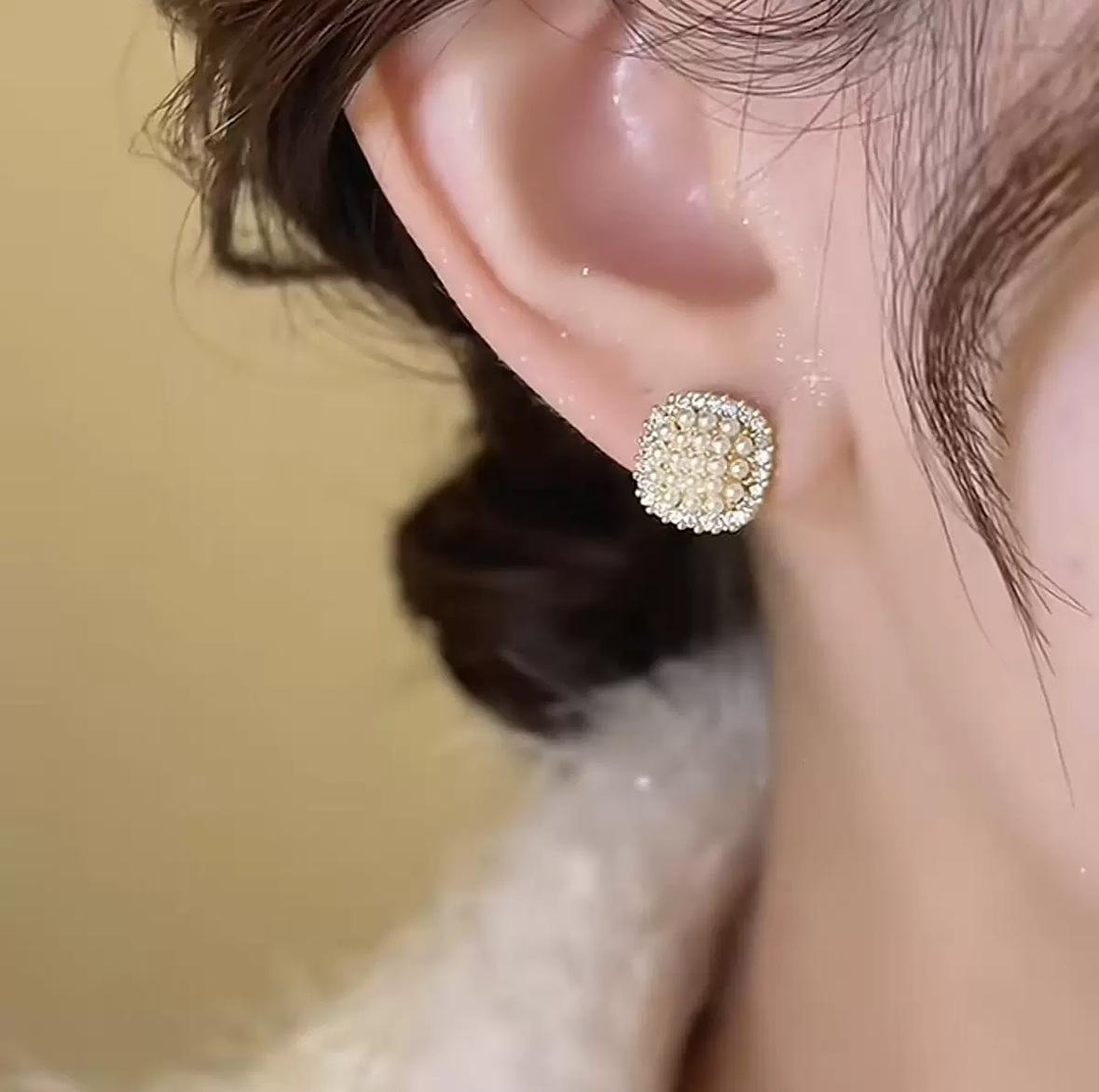 Pendientes de plata 925 con forma de aguja, diseño geométrico cuadrado, con destellos de diamantes y perlas, delicados, románticos, ligeros, de lujo, elegantes y combinables.