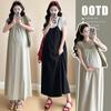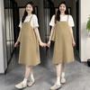 Ropa de Maternidad Otoño Nuevo Estilo Coreano Moda Diseño Nicho Algodón y Lino Camiseta Falda con Tirantes Vestido de Maternidad de Dos Piezas