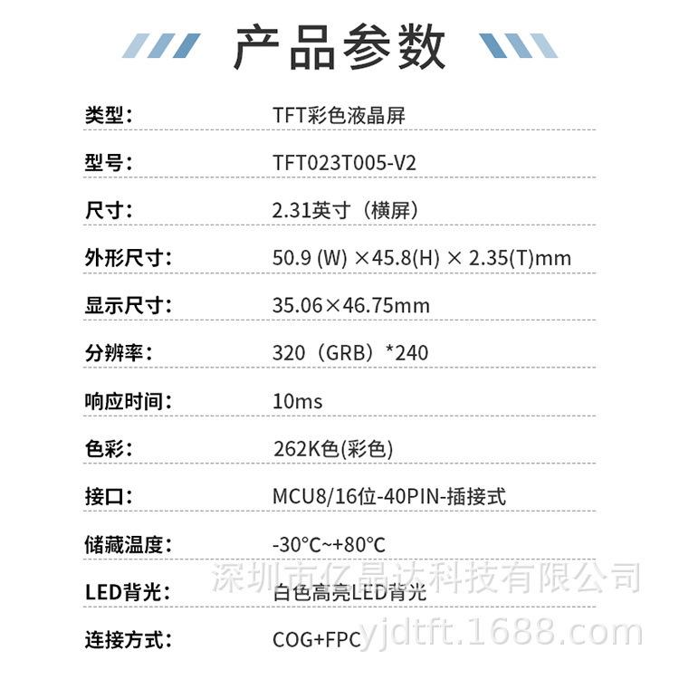 Pantalla LCD a color TFT de 2.31 pulgadas Interfaz MCU 40P Dispositivo portátil Control inteligente Aplicación de control industrial Pantalla