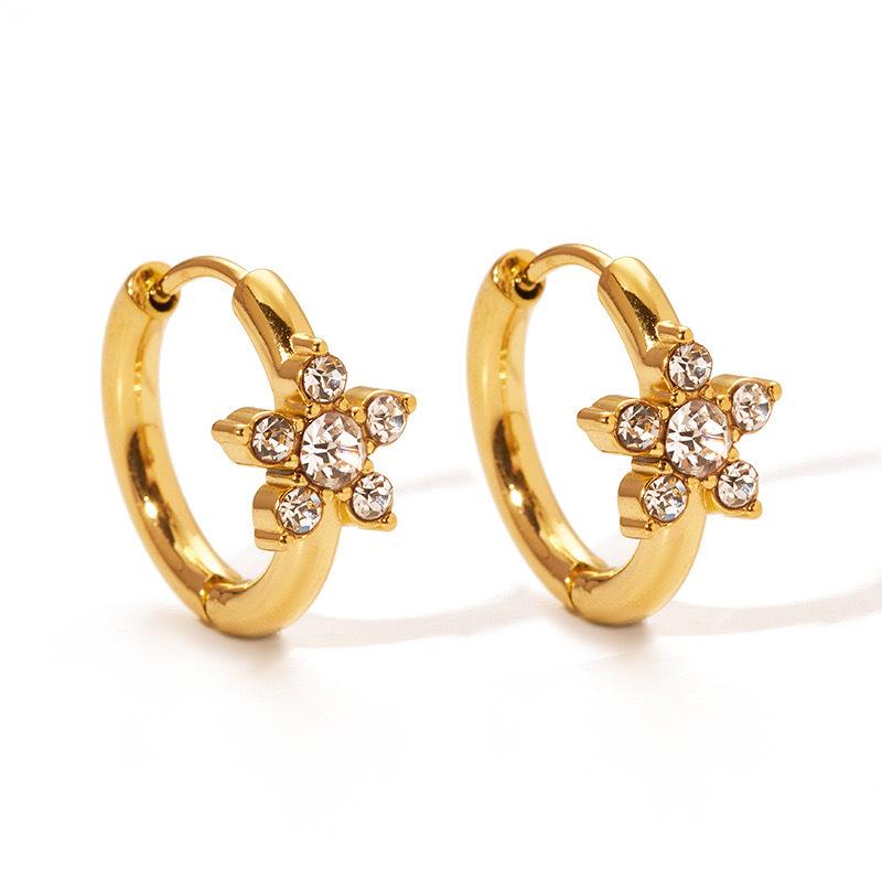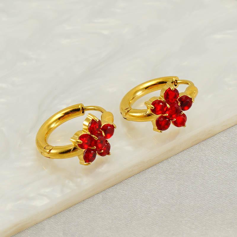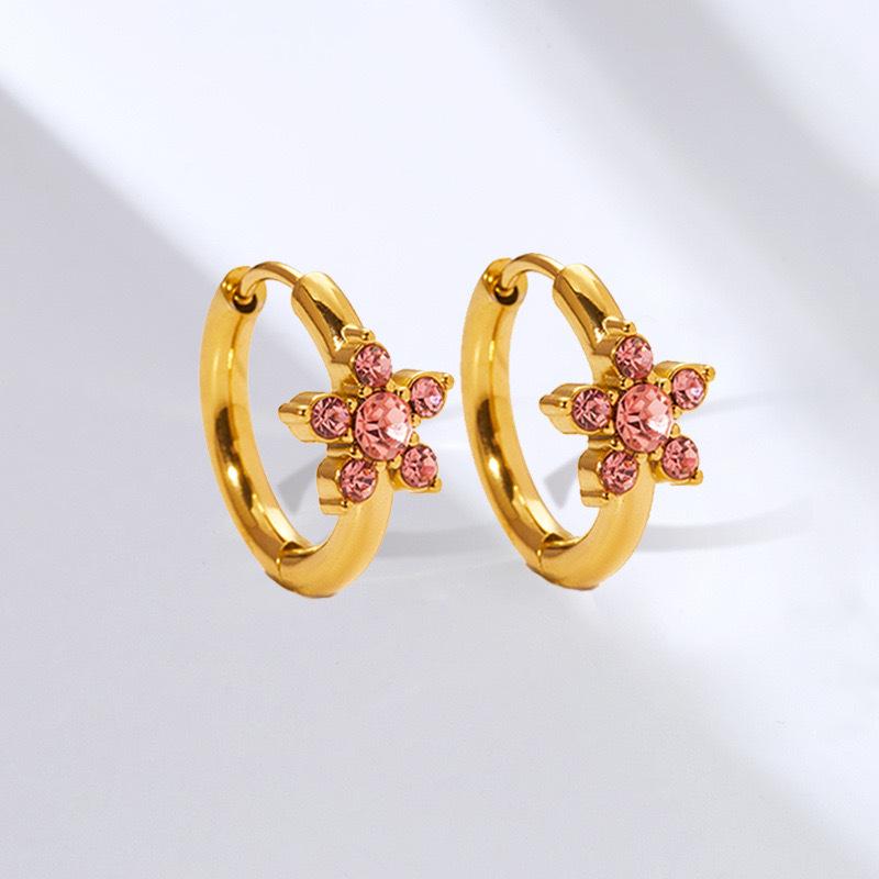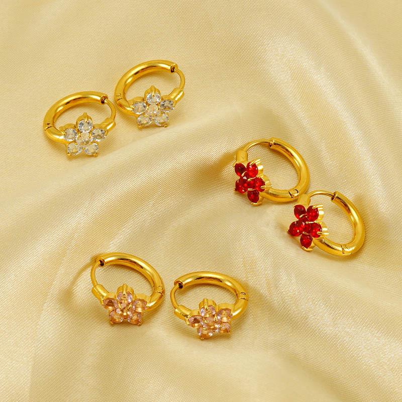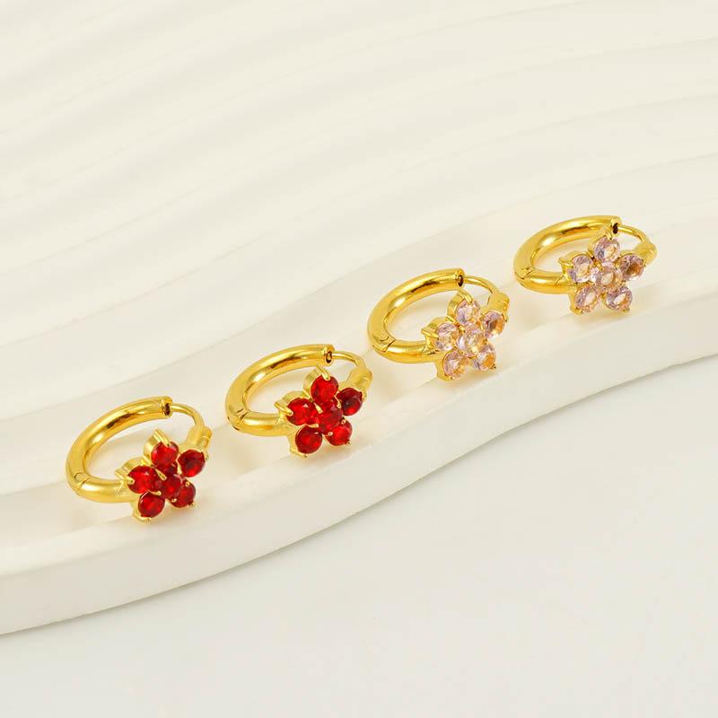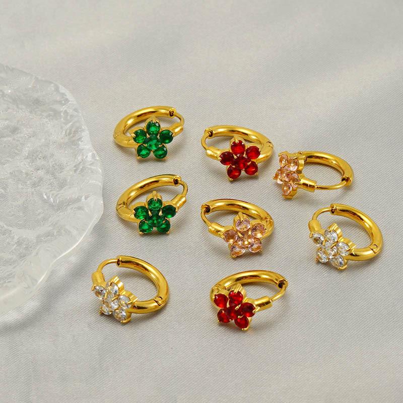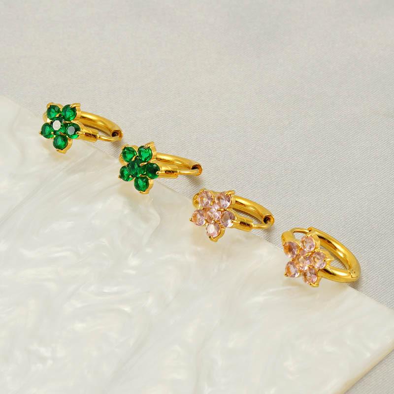 Pendientes de acero inoxidable con circonitas y flores de estilo europeo y americano INS, con un toque dulce de nicho, de acero de titanio de alta calidad para mujer.