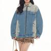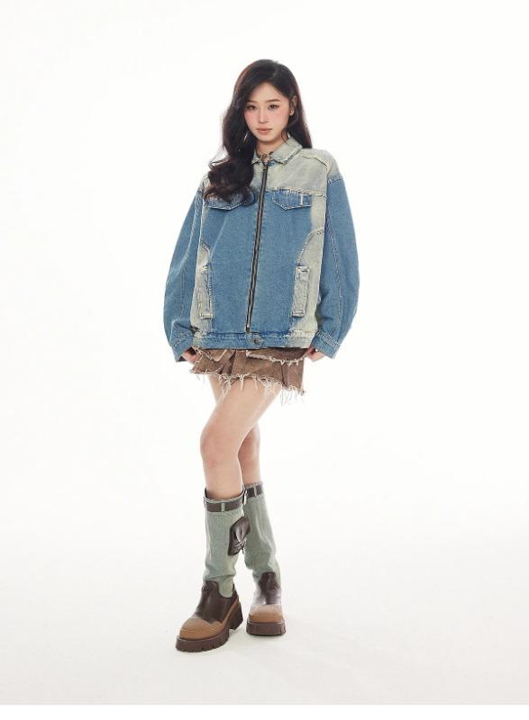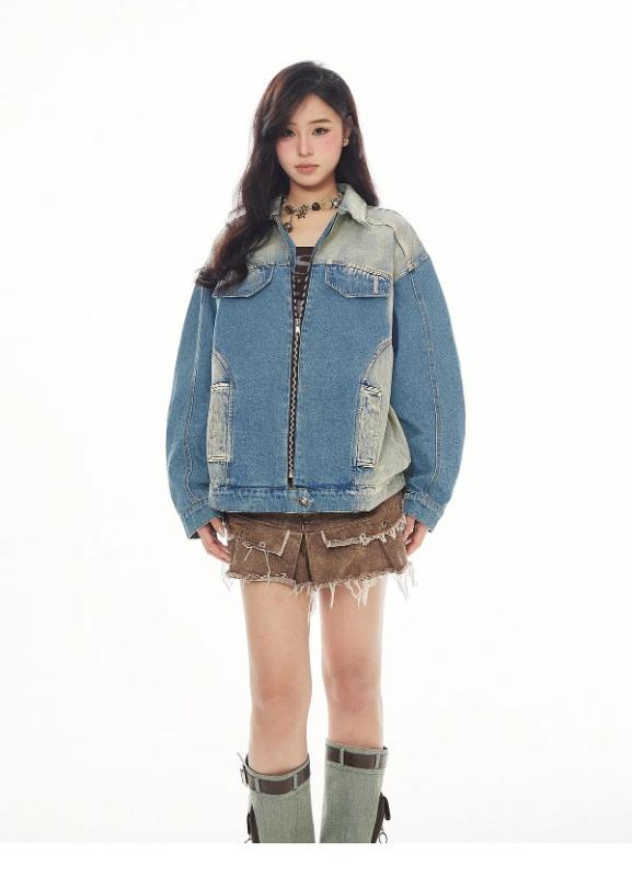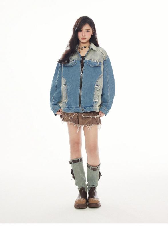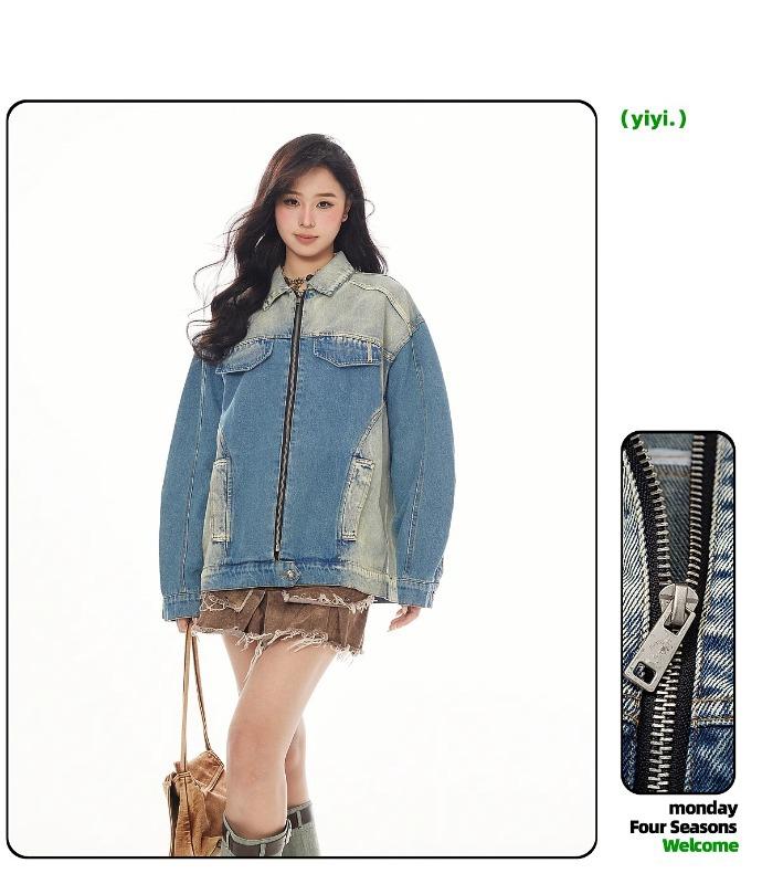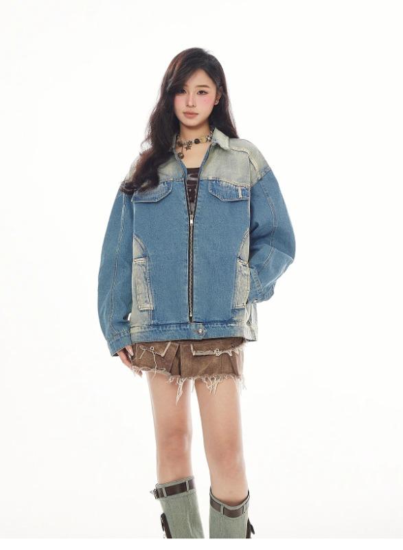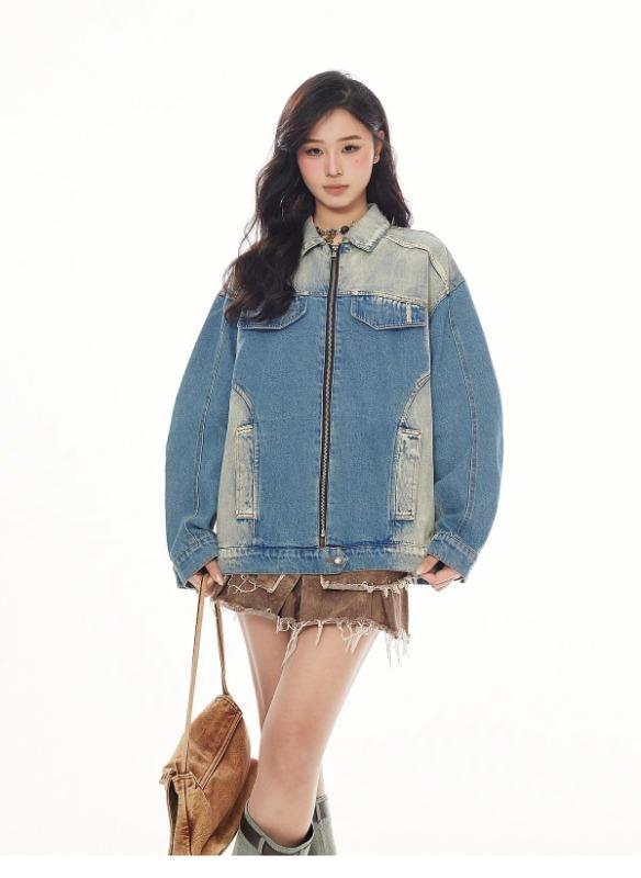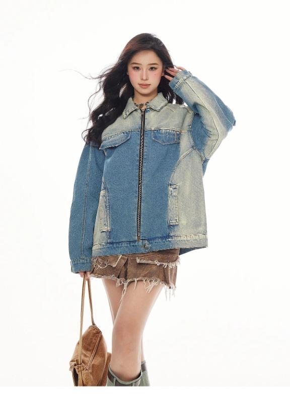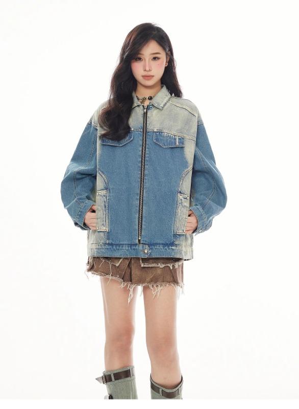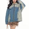 Chaqueta de mezclilla lavada estilo retro americano de industria pesada para mujer, nueva primavera temprana 2024, sentido del diseño, holgada, tipo motociclista