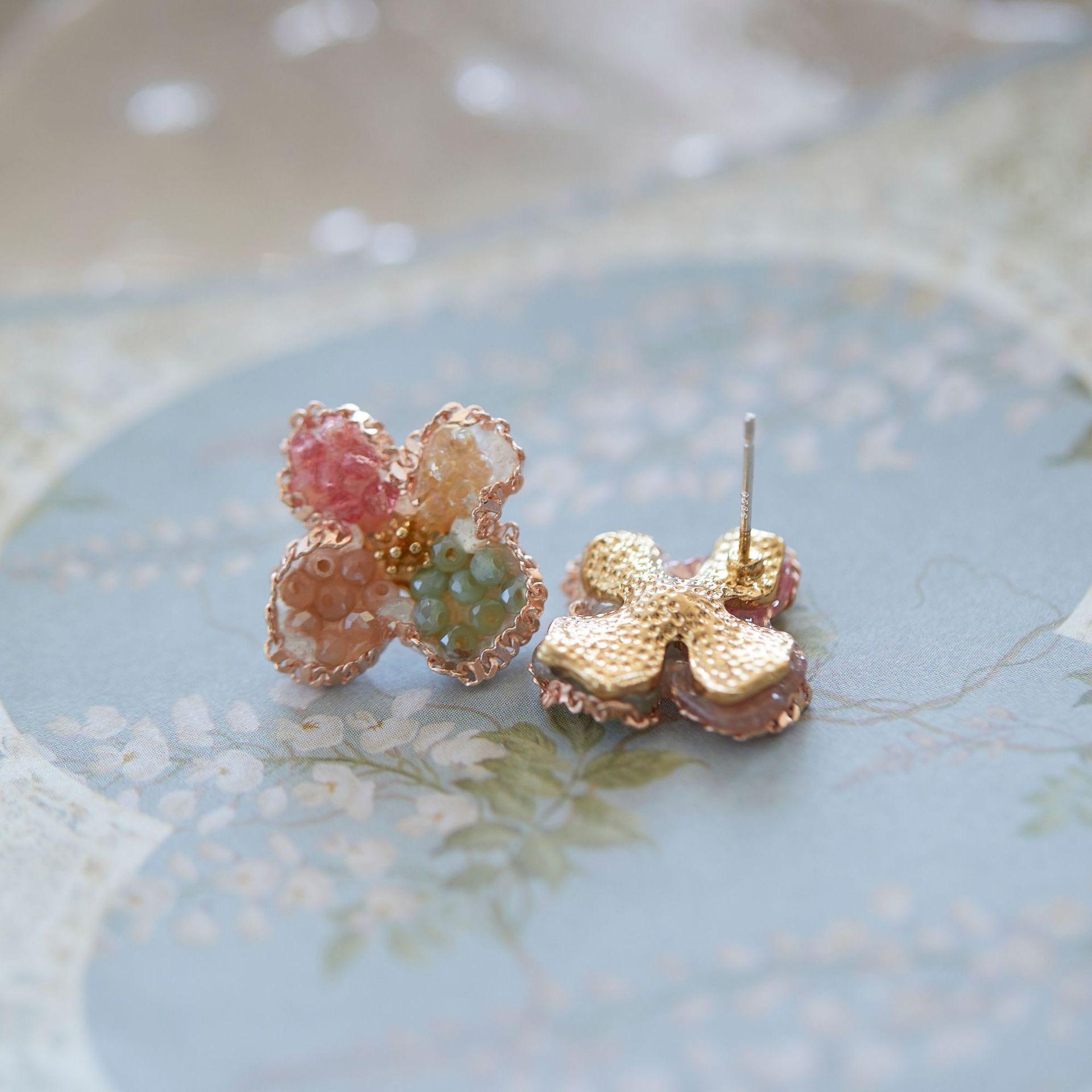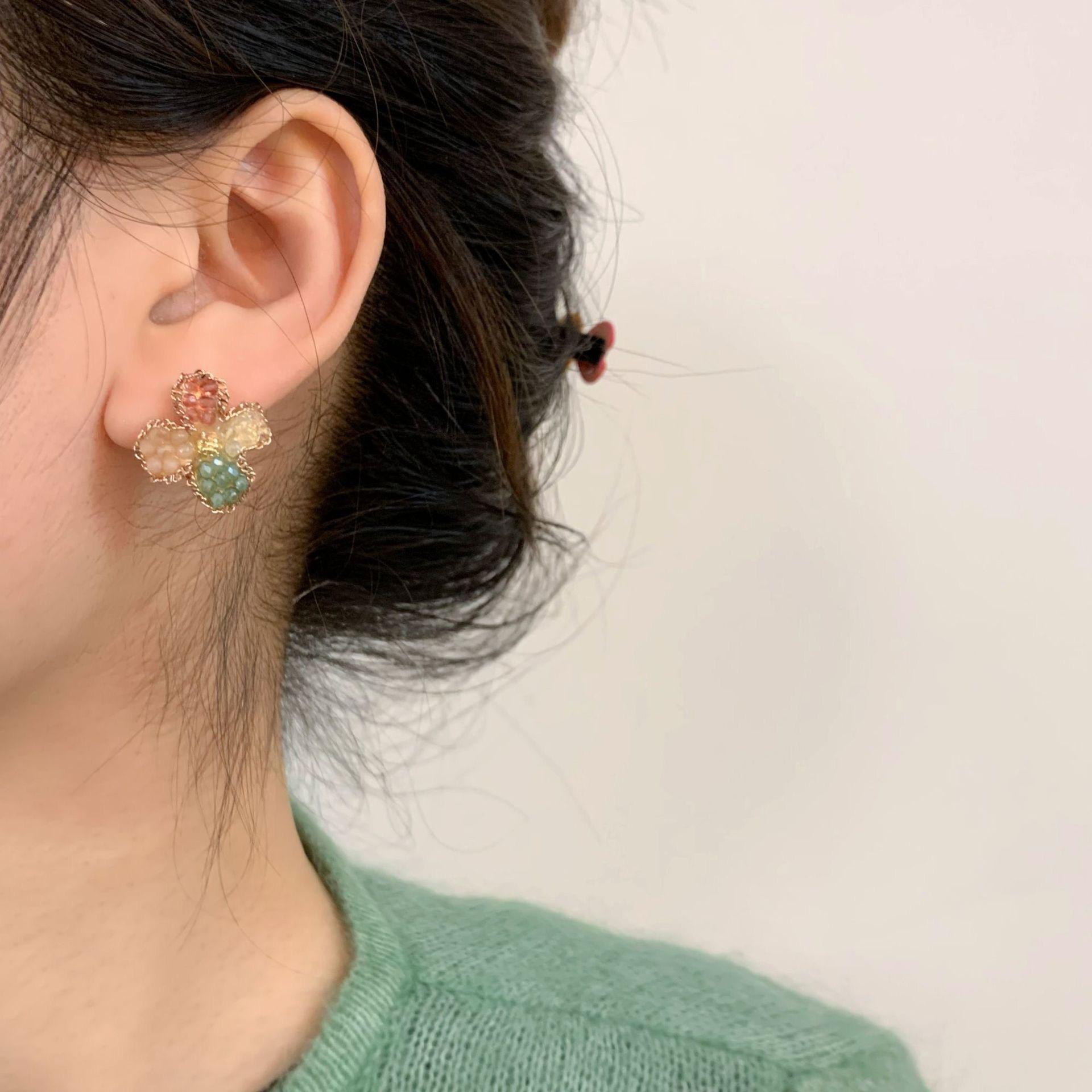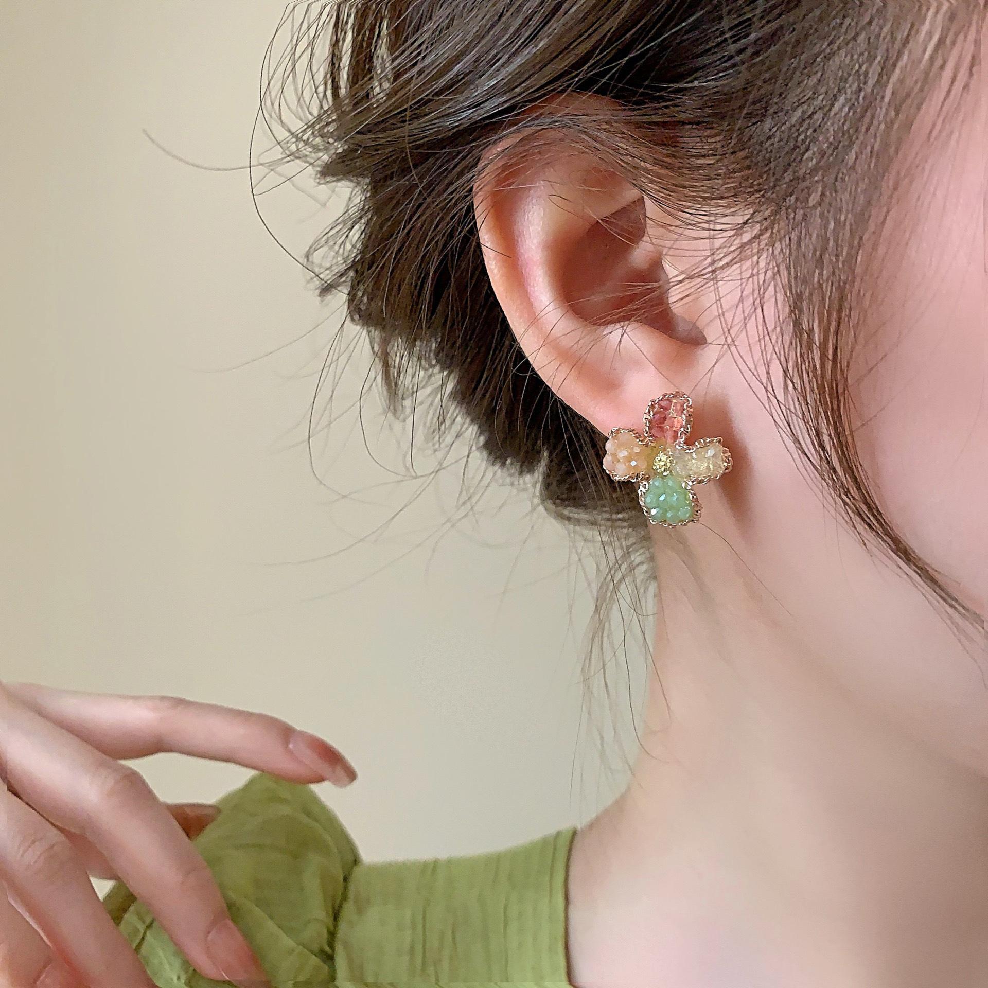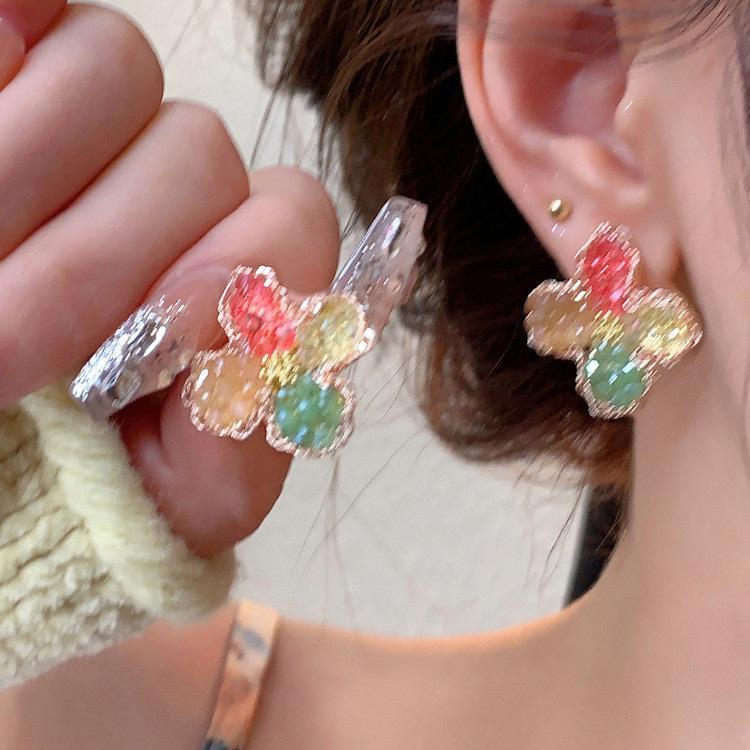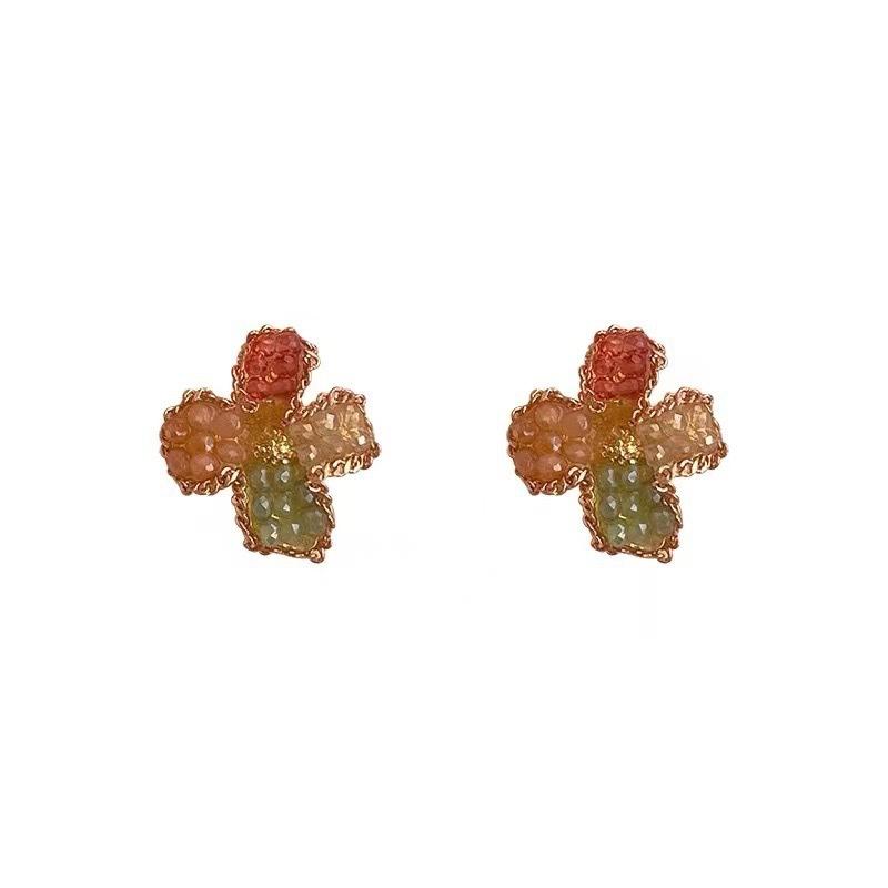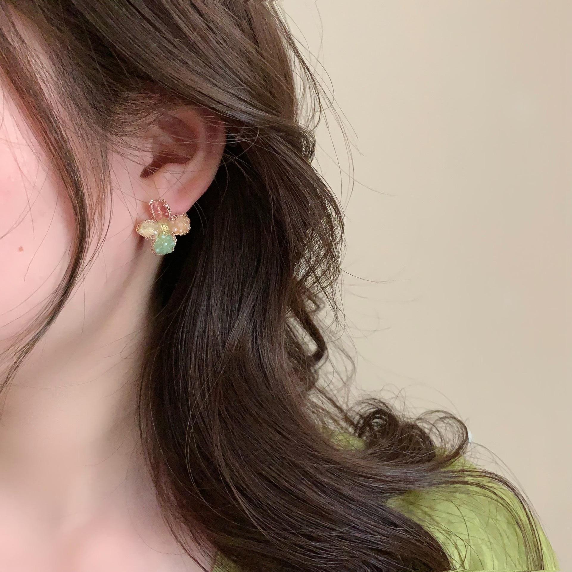 Compra Aretes de botón de flor coloridos de cuatro colores con sentido del diseño de nicho estilo coreano, nuevos aretes de combinación de colores dulces que combinan con todo para mujer al por mayor en Joom.pro