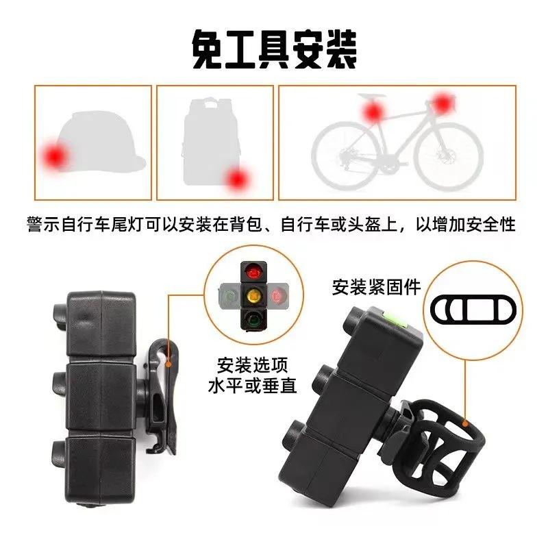 Nueva luz trasera de bicicleta, luz de advertencia de seguridad nocturna de tres colores, semáforo con carga USB, luz para montar en bicicleta de montaña