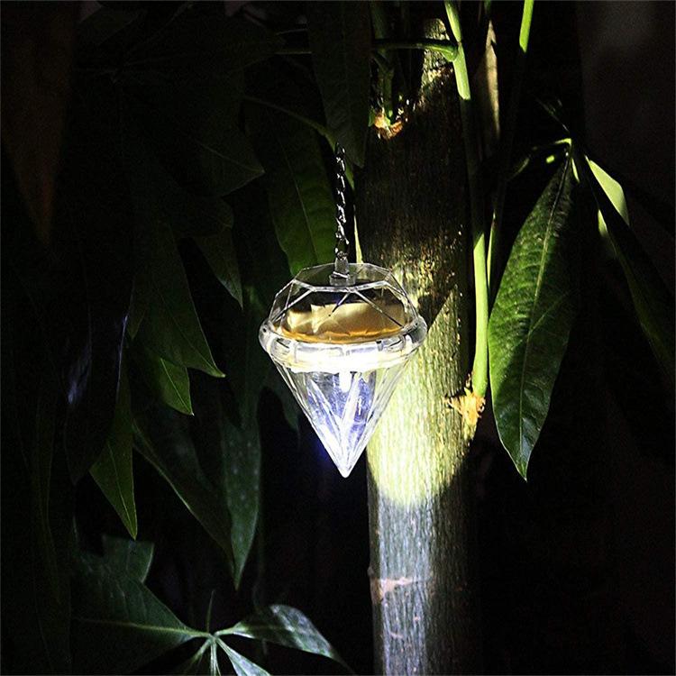 Nueva lámpara solar de exterior con forma de diamante giratorio, colgante para árbol, para patio, cerca, decoración, degradado colorido