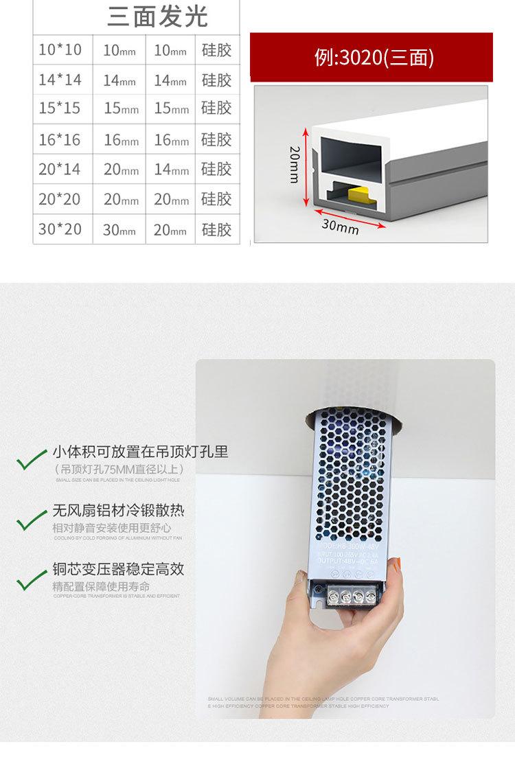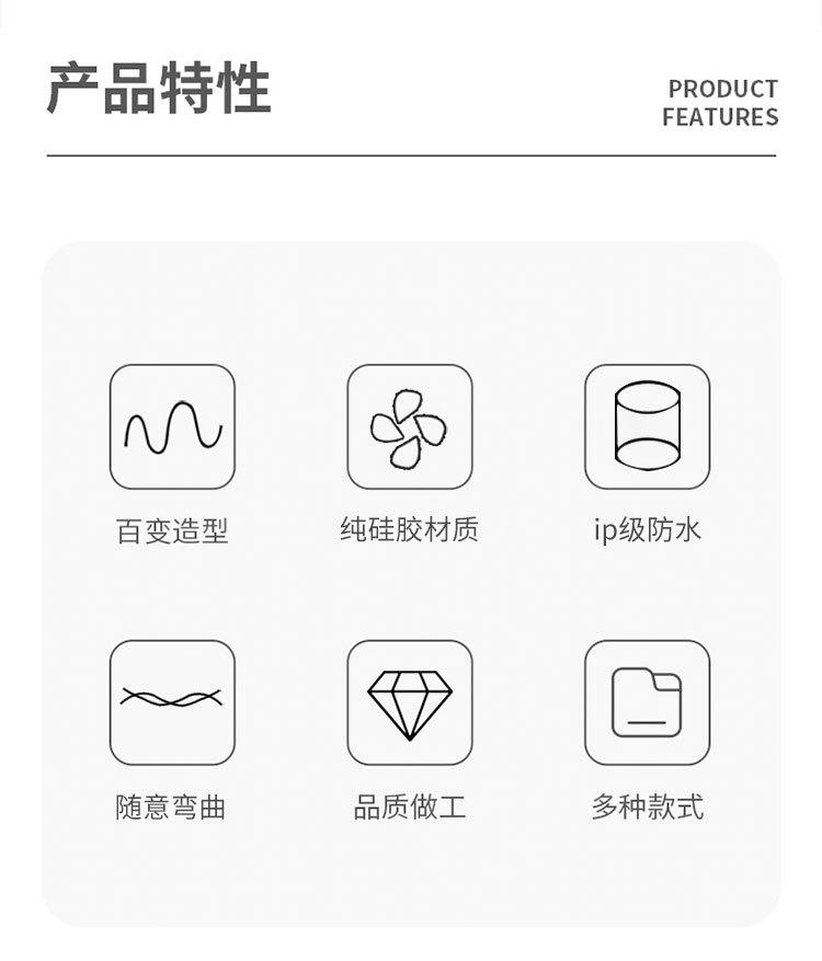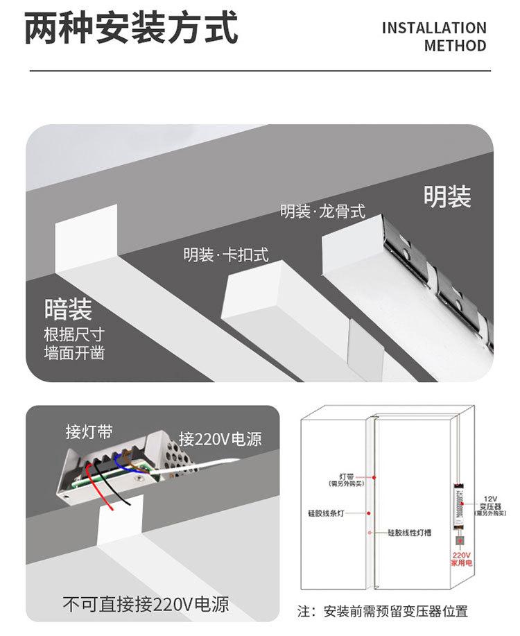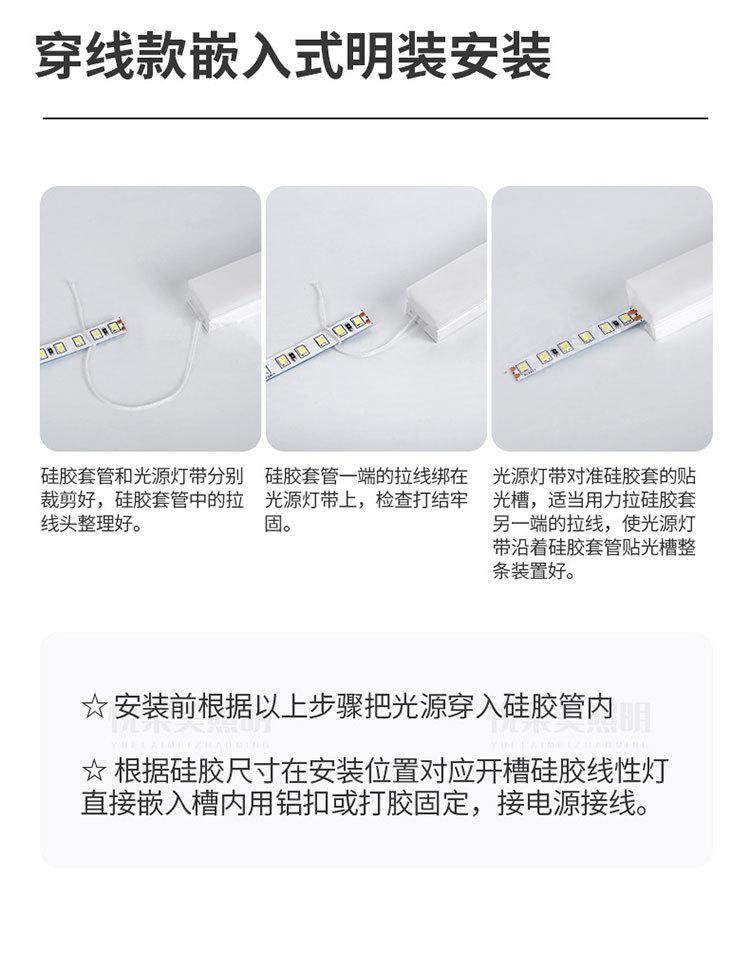 Lámpara de silicona empotrada con manga, lámpara lineal, apertura antidesgaste, ranura flexible impermeable con borde, lámpara lineal flexible