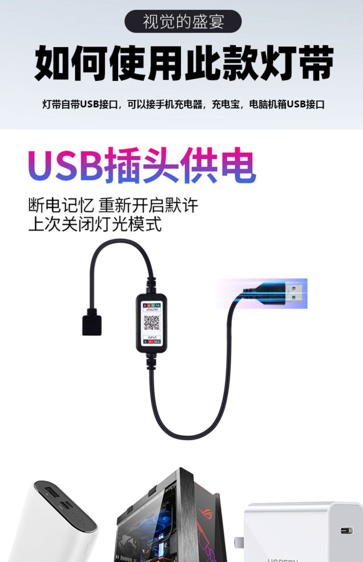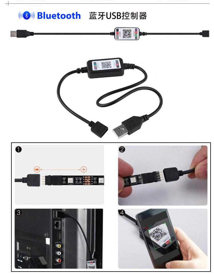 Controlador de Tira de Luz RGB con Interfaz USB Aplicación Bluetooth para Teléfono Móvil Atenuación Música Tira de Luz LED Cambio de Color Luz de Fondo 5V