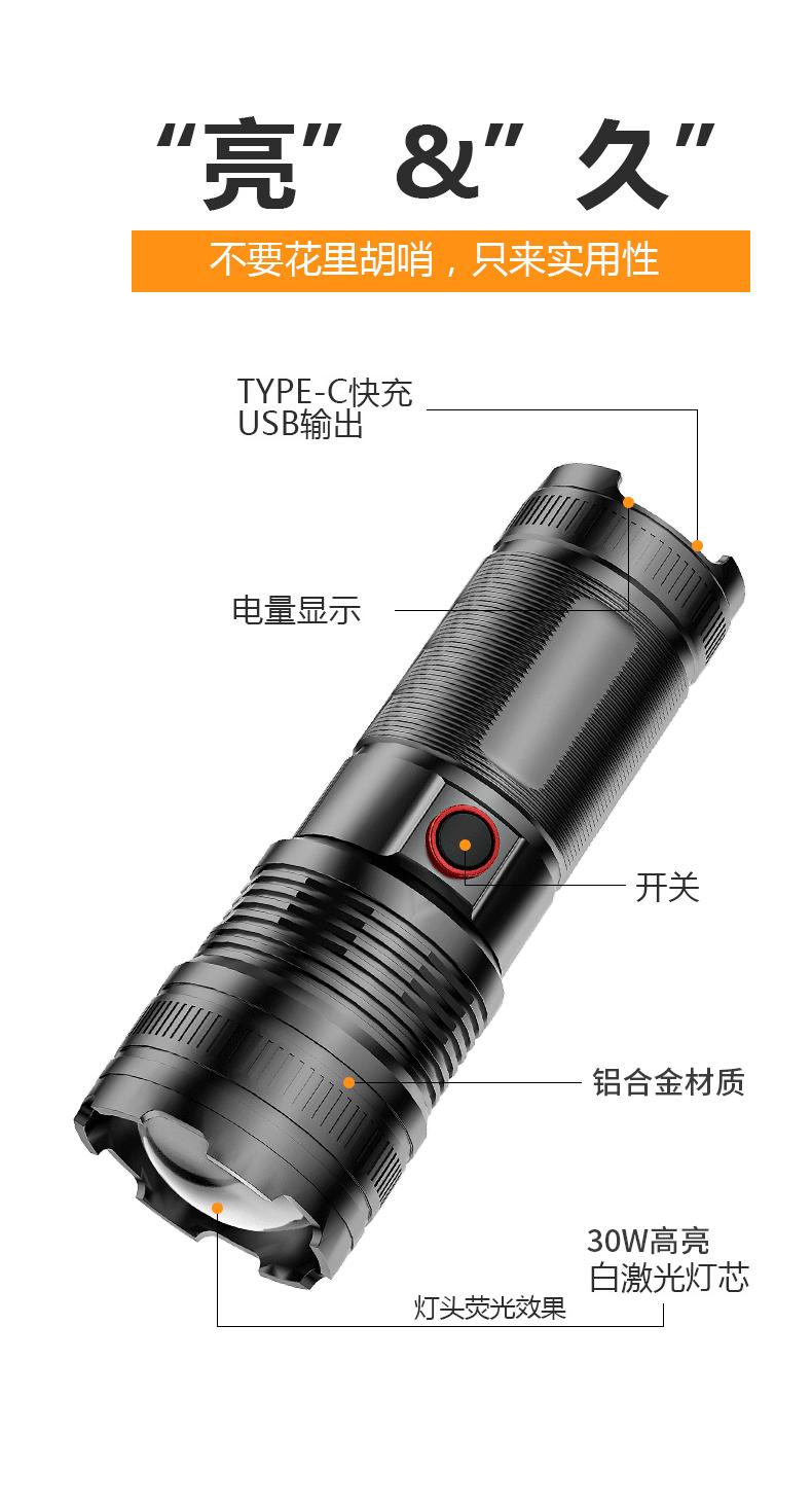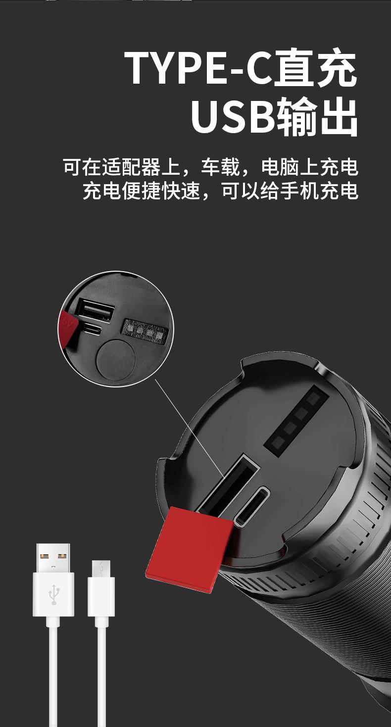 Linterna led de largo alcance transfronteriza recargable por USB portátil para exteriores linterna con zoom telescópico impermeable