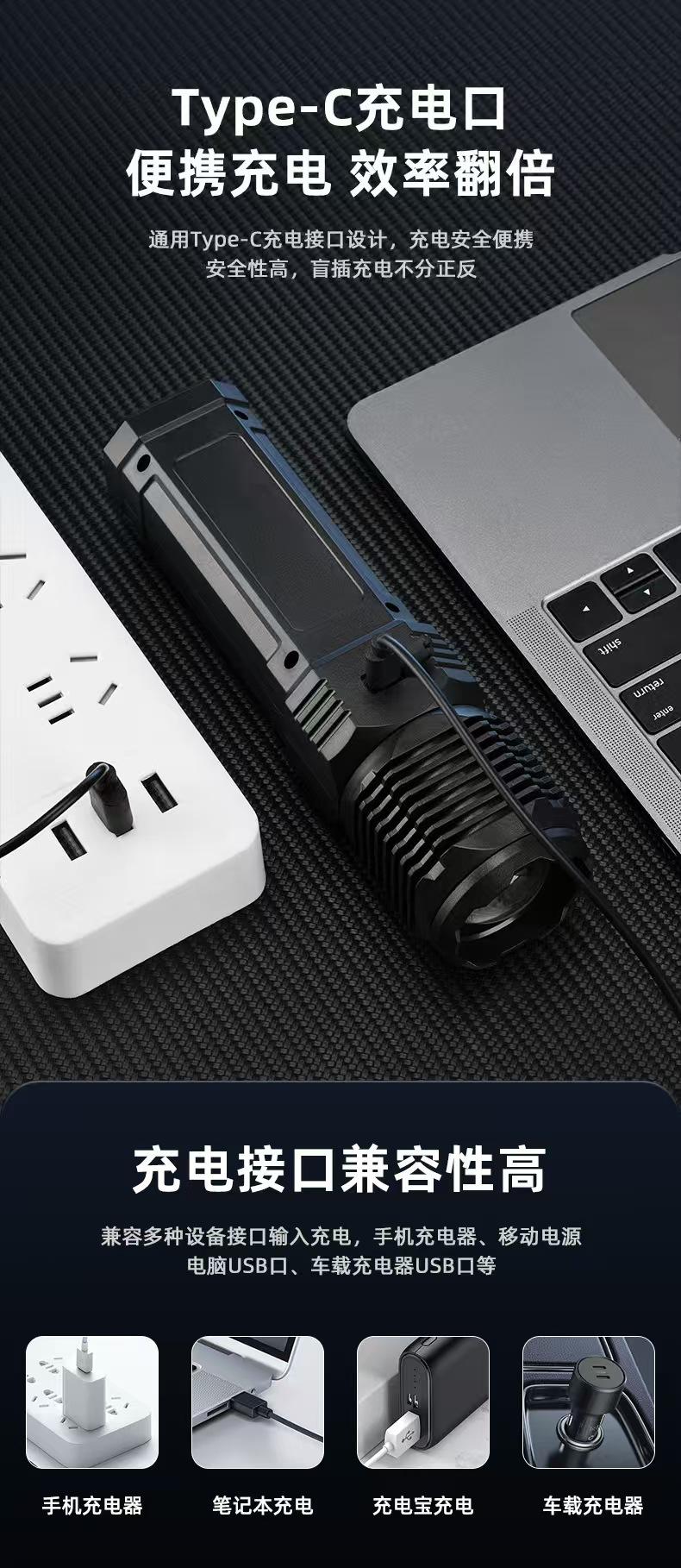 Linterna LED de alta potencia y largo alcance para exteriores, con zoom, carga TIPO C, luz potente, láser blanco