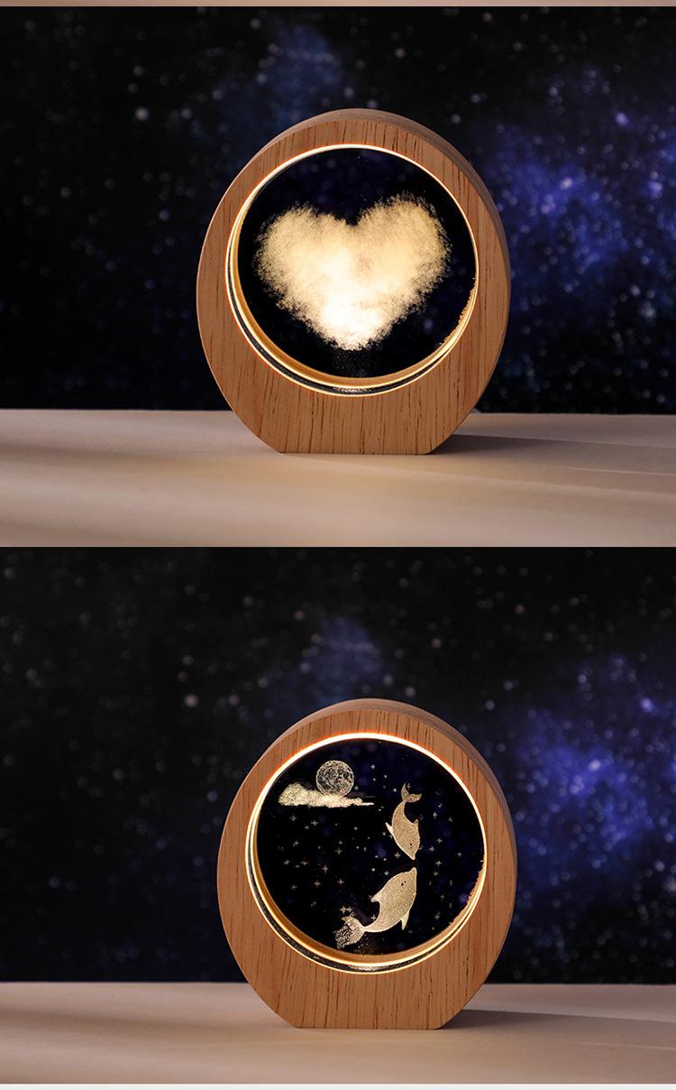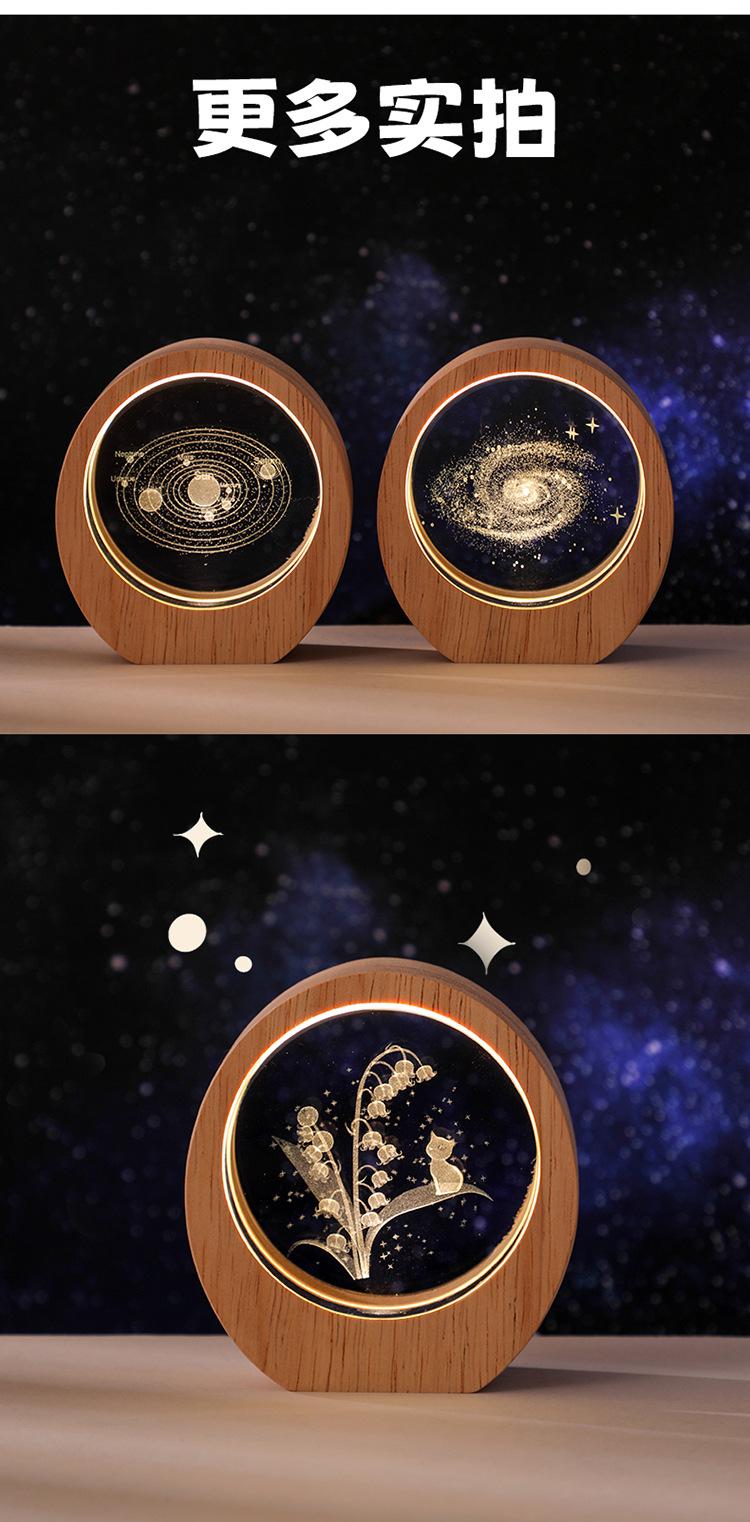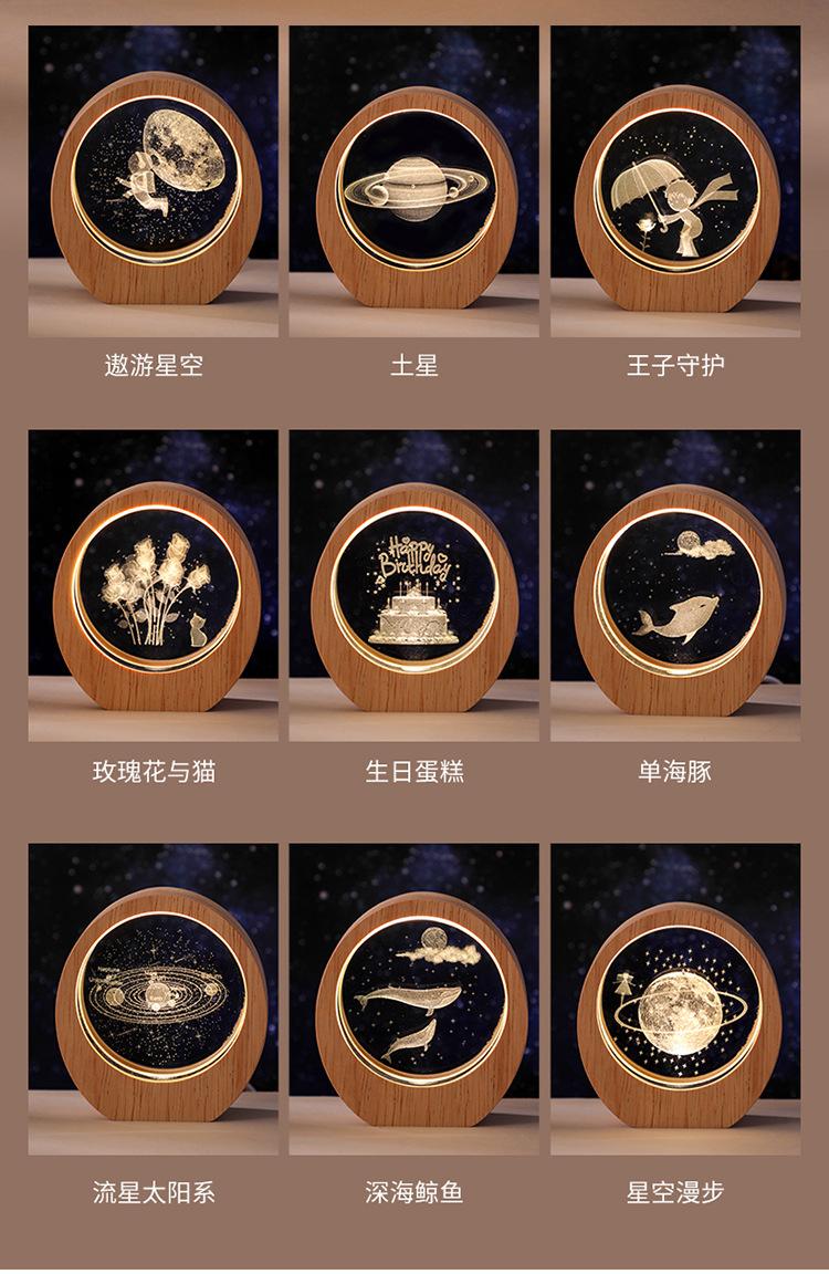 Luz Nocturna de Cristal Grabado Interior 3D Transfronteriza con Base Luminosa de Madera, Adorno Creativo de Escritorio, Luz Ambiental, Regalo de Cumpleaños