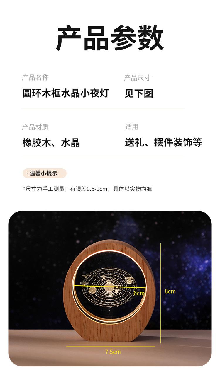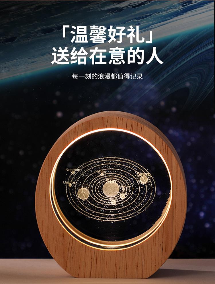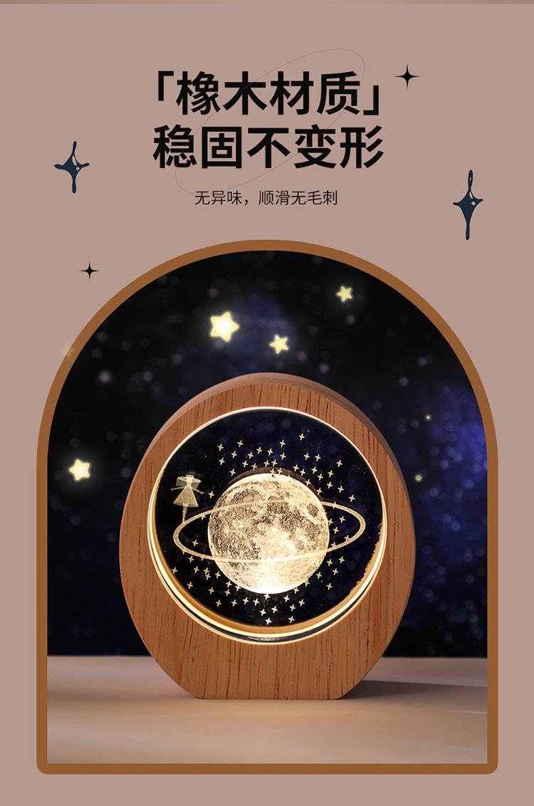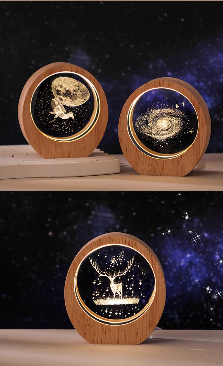 Luz Nocturna de Cristal Grabado Interior 3D Transfronteriza con Base Luminosa de Madera, Adorno Creativo de Escritorio, Luz Ambiental, Regalo de Cumpleaños