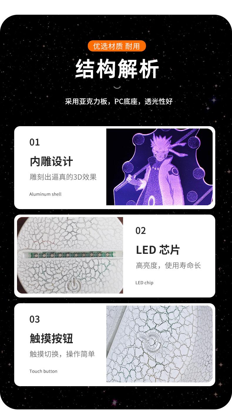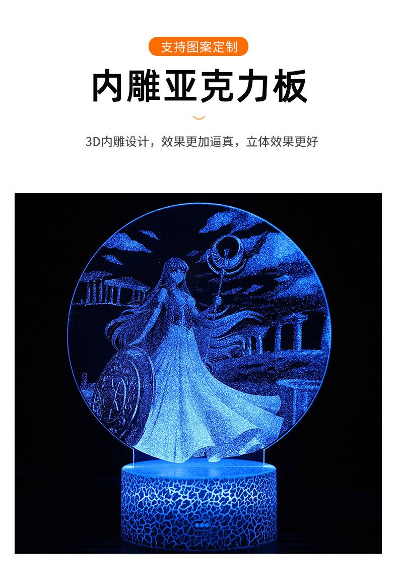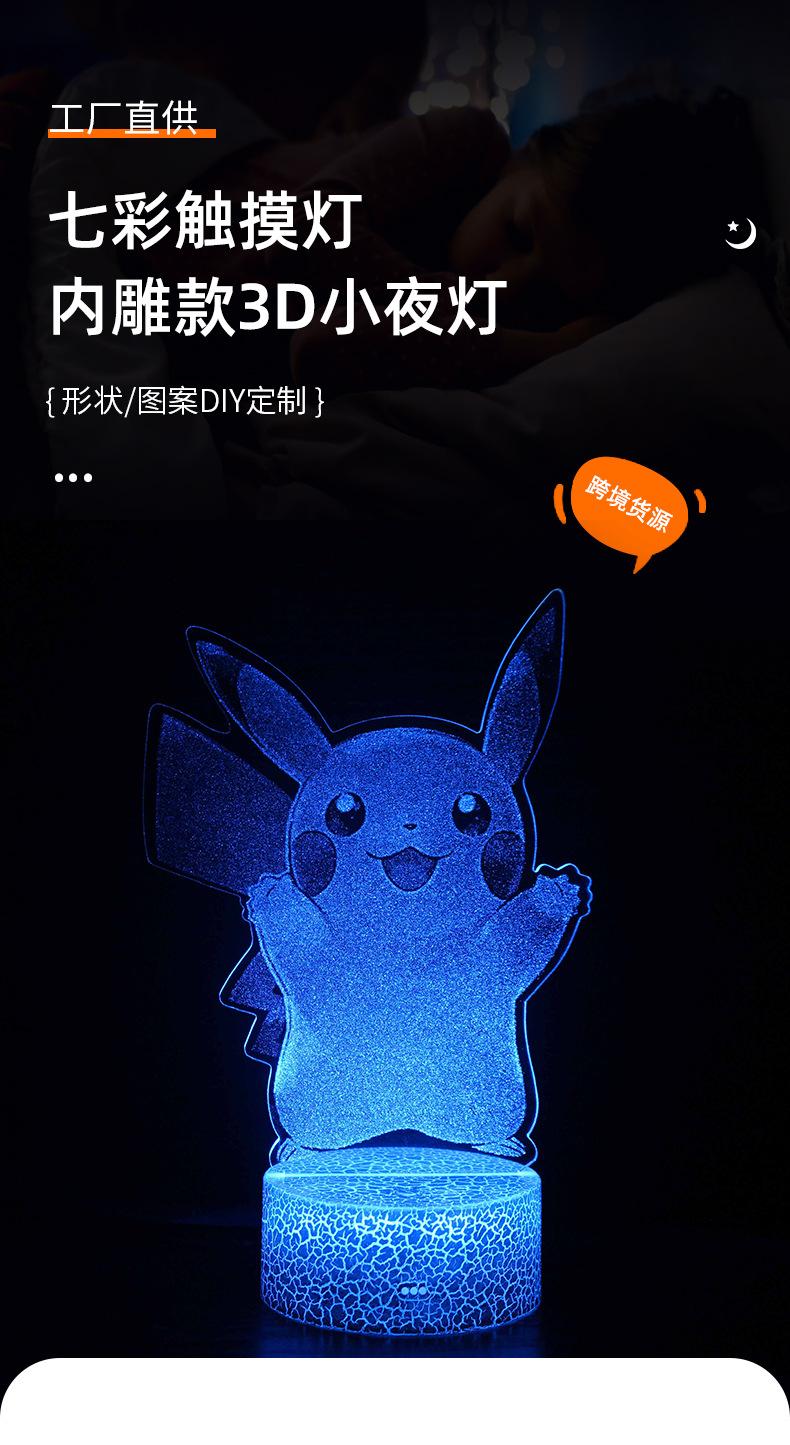 Lámpara de escritorio creativa con USB táctil colorida 3D con tablero acrílico tallado y luz nocturna transfronteriza de personajes de dibujos animados