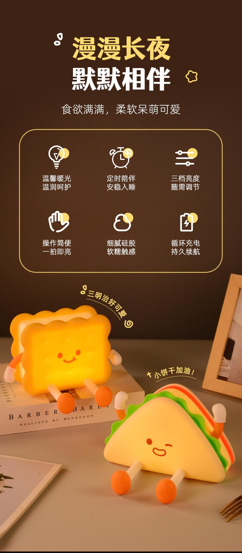 Luz de noche tipo sándwich para té de la tarde, adorno de escritorio, luz de ambiente para mesita de noche, luz creativa de inducción con forma de galleta, regalo para niños