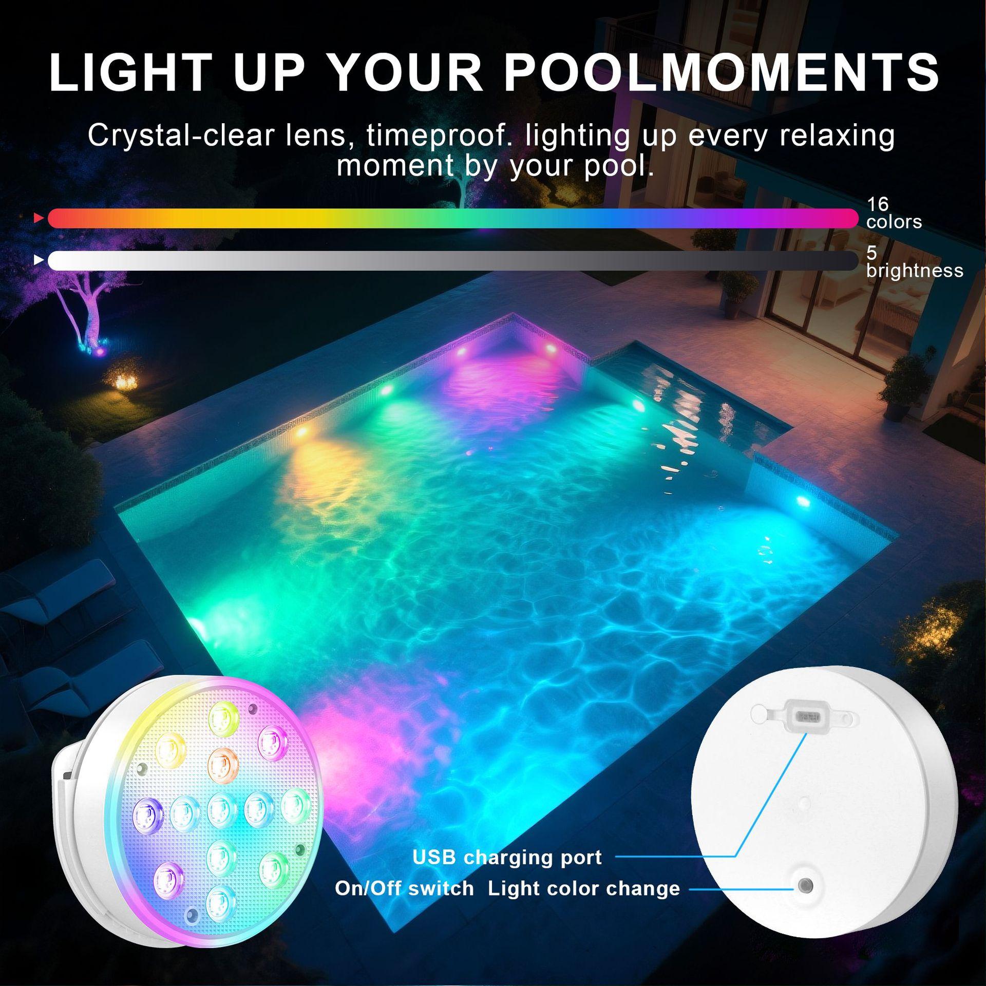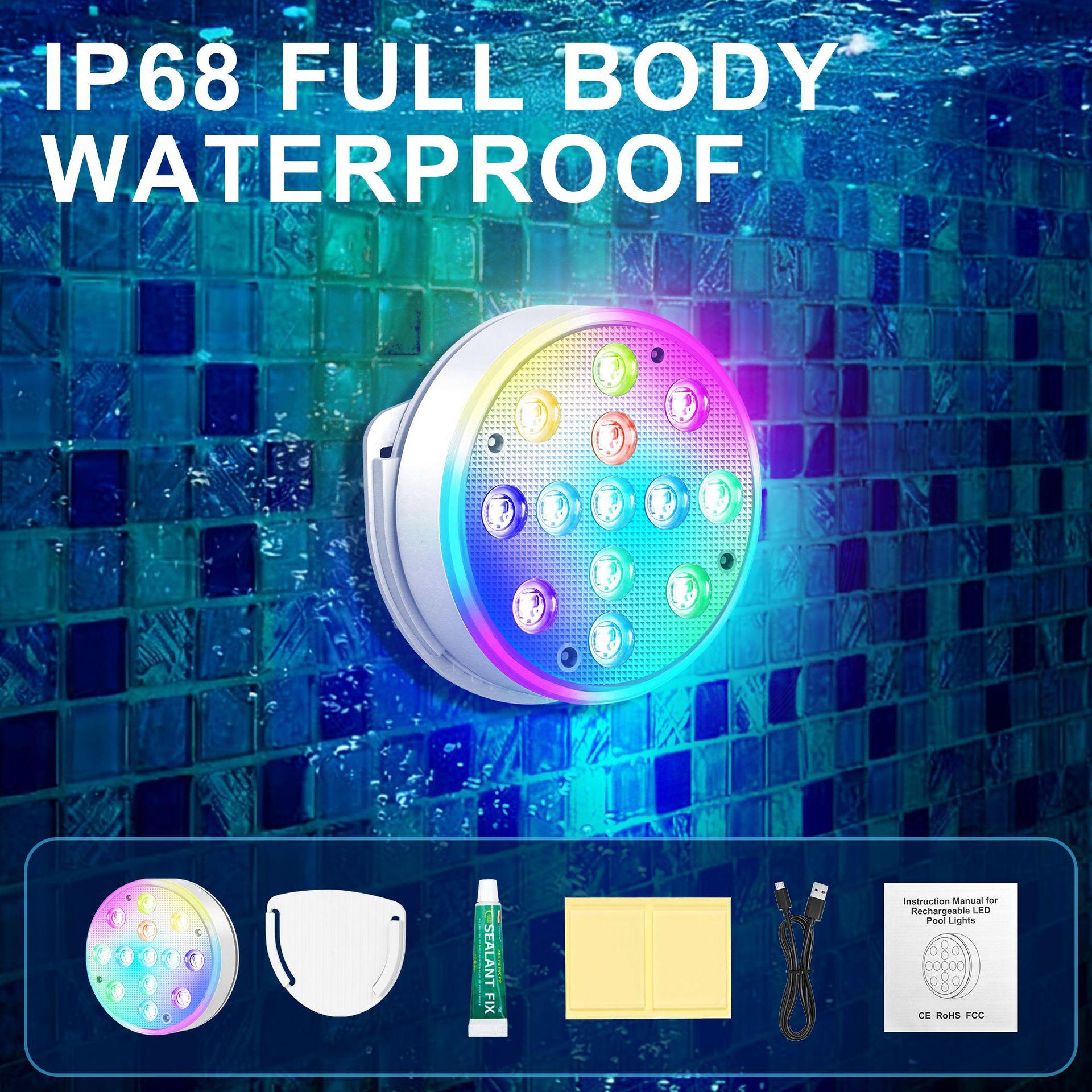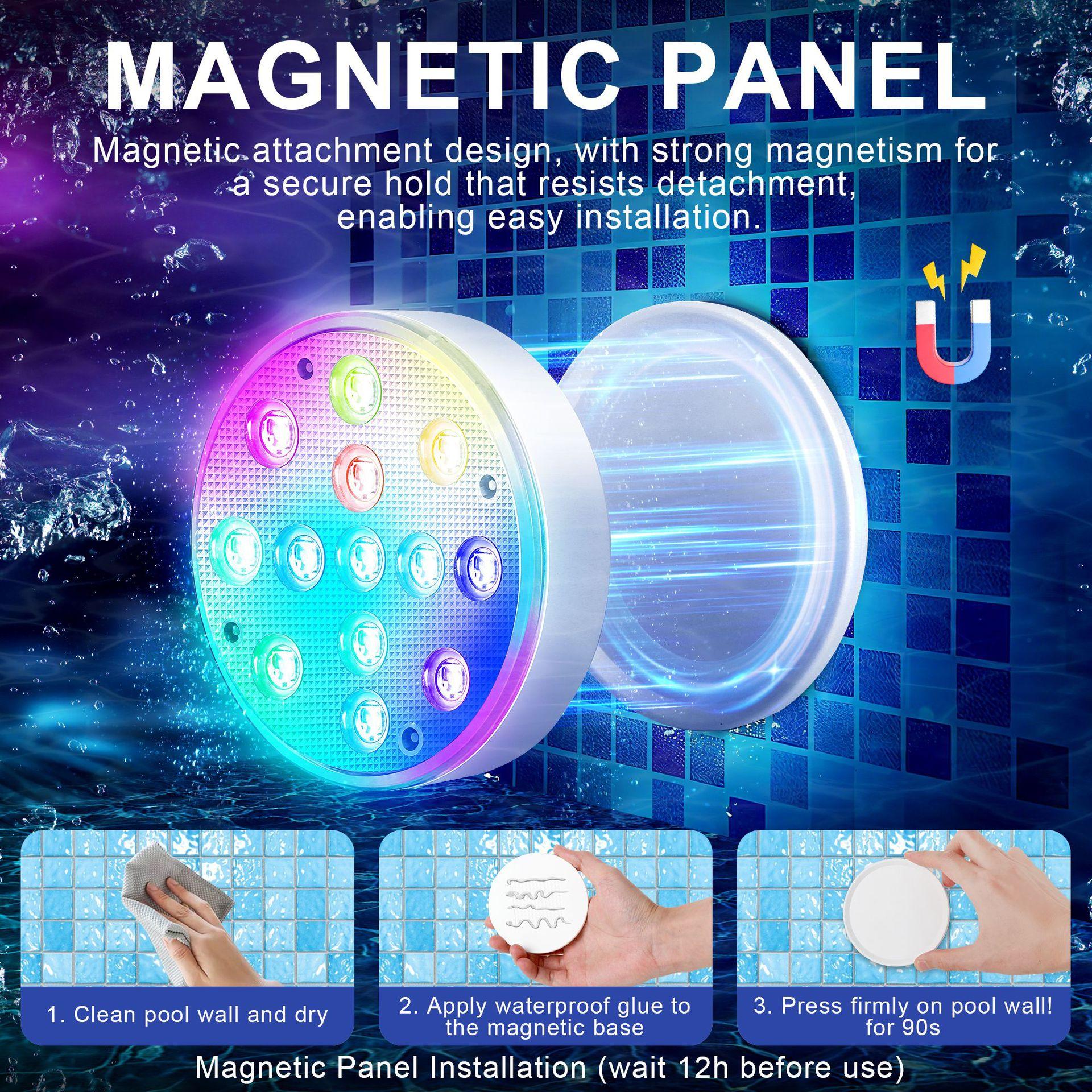 Lámpara de Pared para Piscina Led Lámpara para Piscina Magnética Recargable Lámpara de Buceo 13-Cuentas Control Remoto Lámpara Subacuática Ip68 Luz de Ambiente para Paisaje