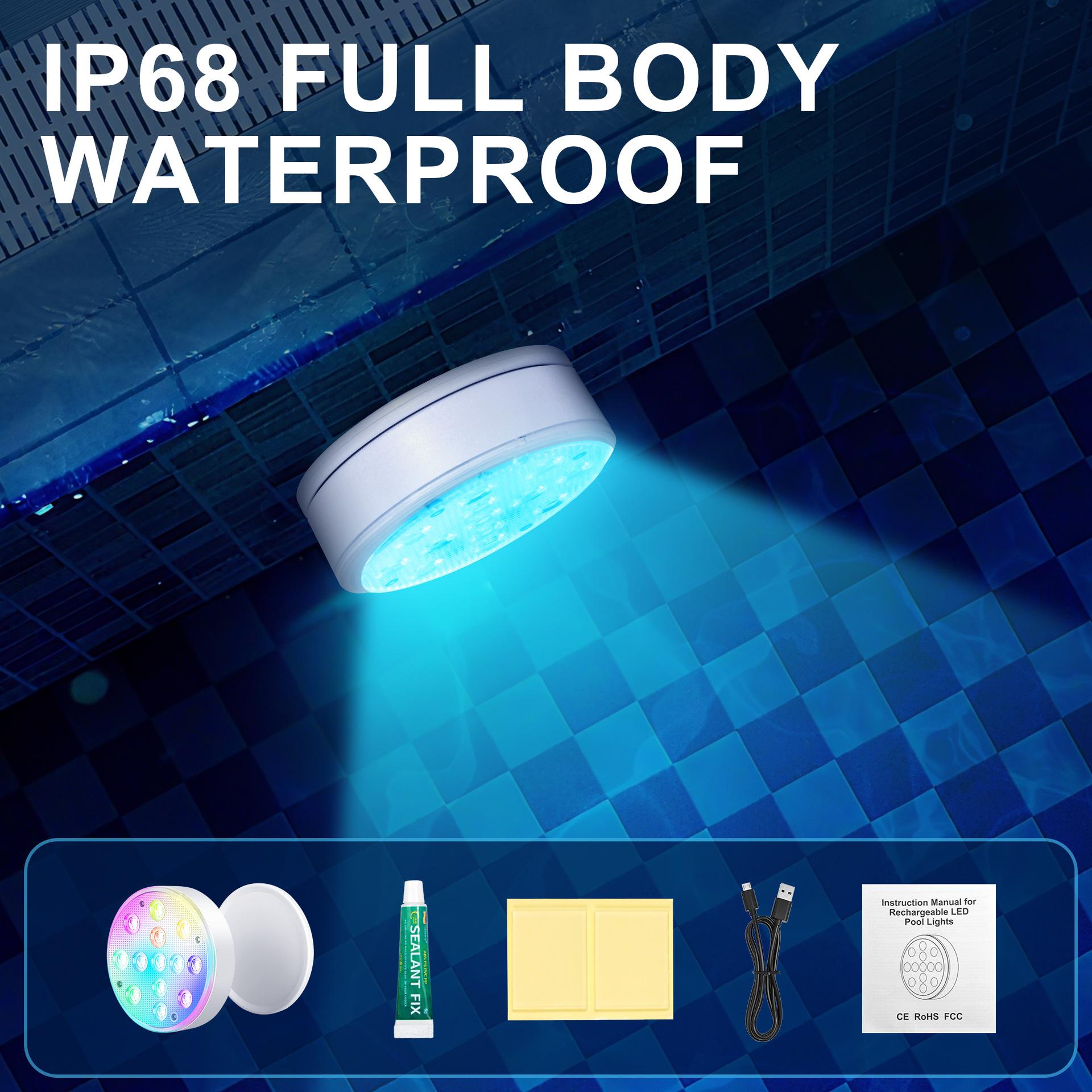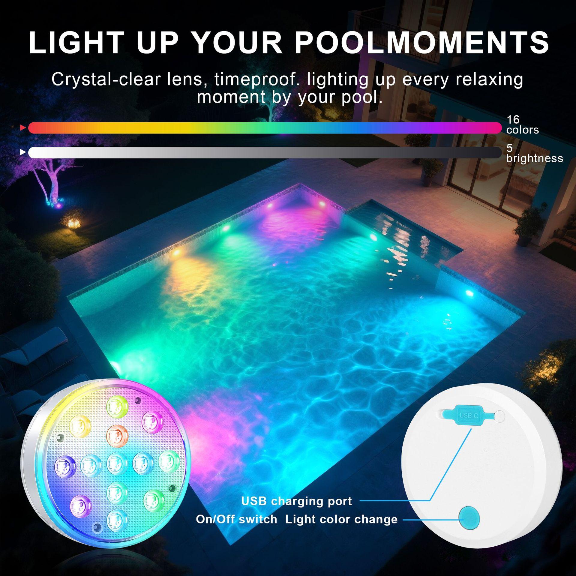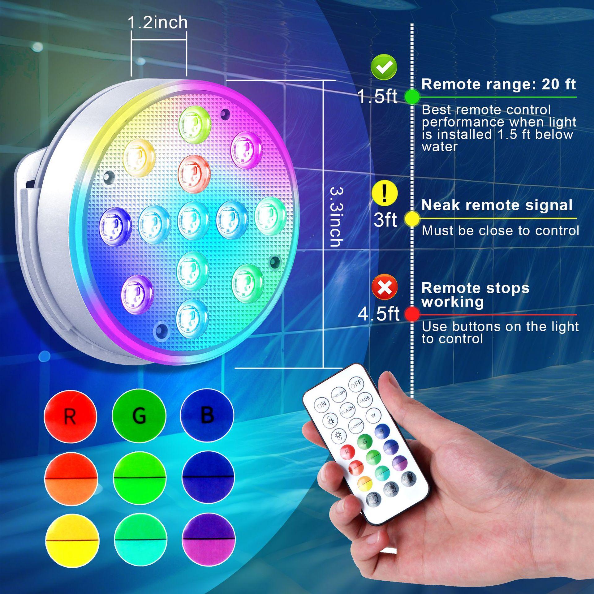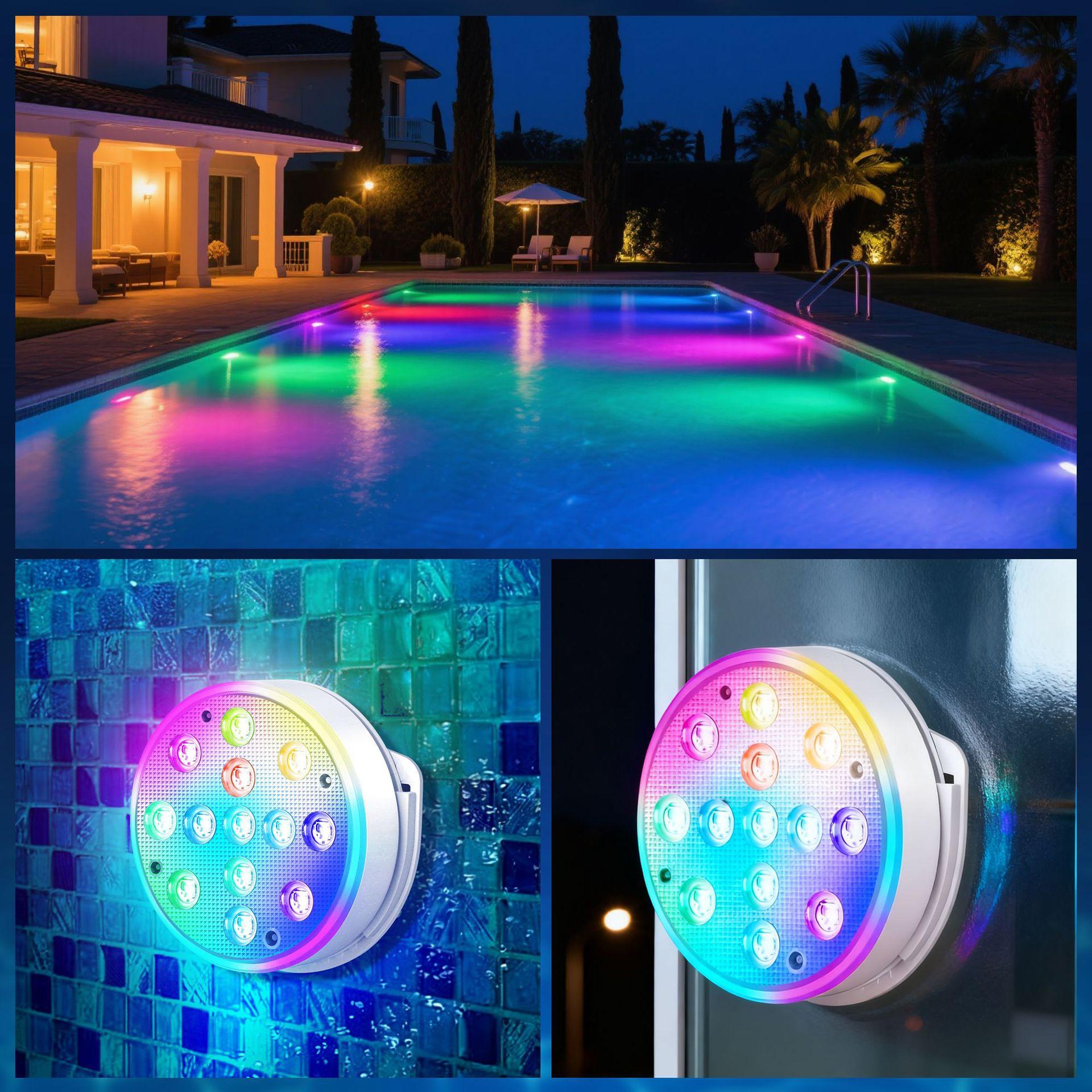 Lámpara de Pared para Piscina Led Lámpara para Piscina Magnética Recargable Lámpara de Buceo 13-Cuentas Control Remoto Lámpara Subacuática Ip68 Luz de Ambiente para Paisaje