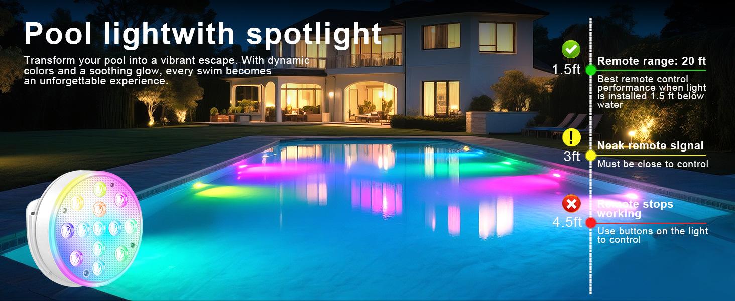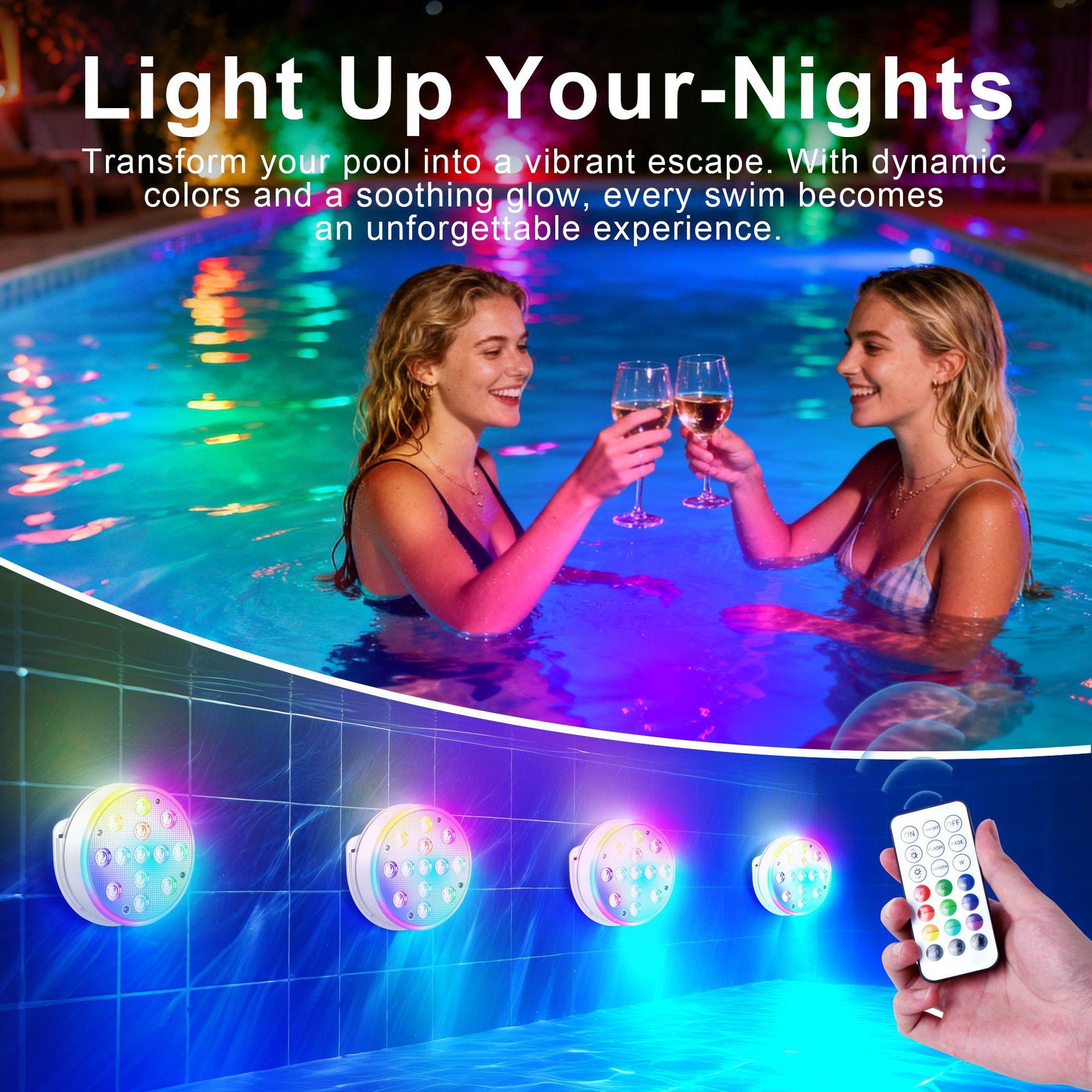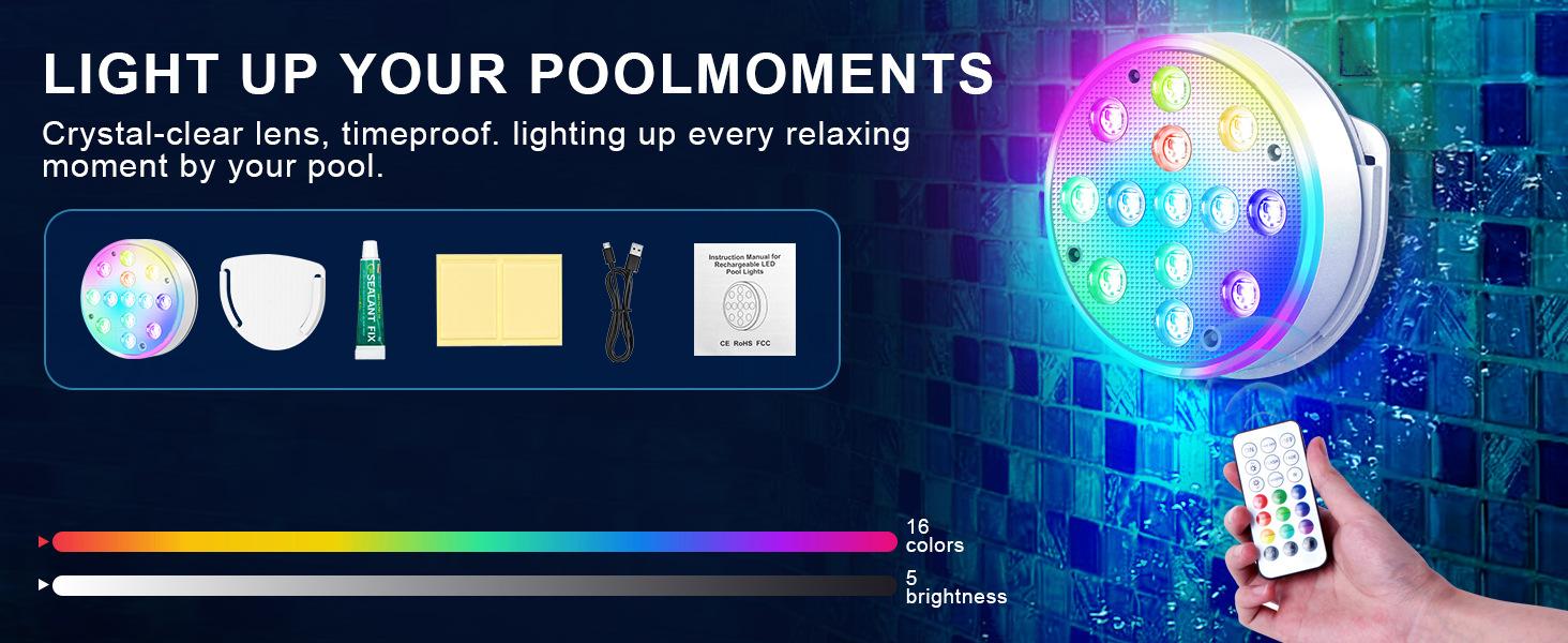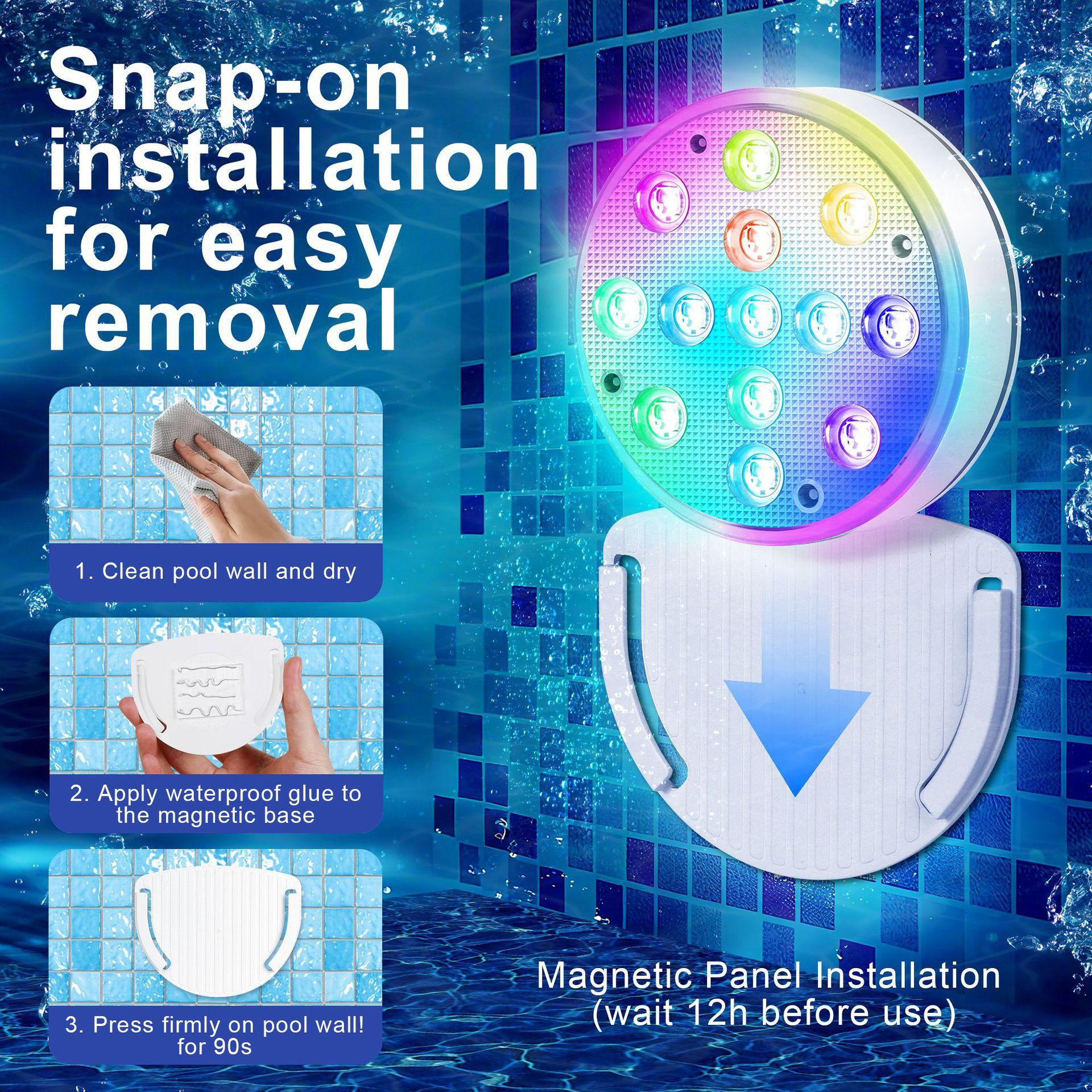 Lámpara de Pared para Piscina Led Lámpara para Piscina Magnética Recargable Lámpara de Buceo 13-Cuentas Control Remoto Lámpara Subacuática Ip68 Luz de Ambiente para Paisaje